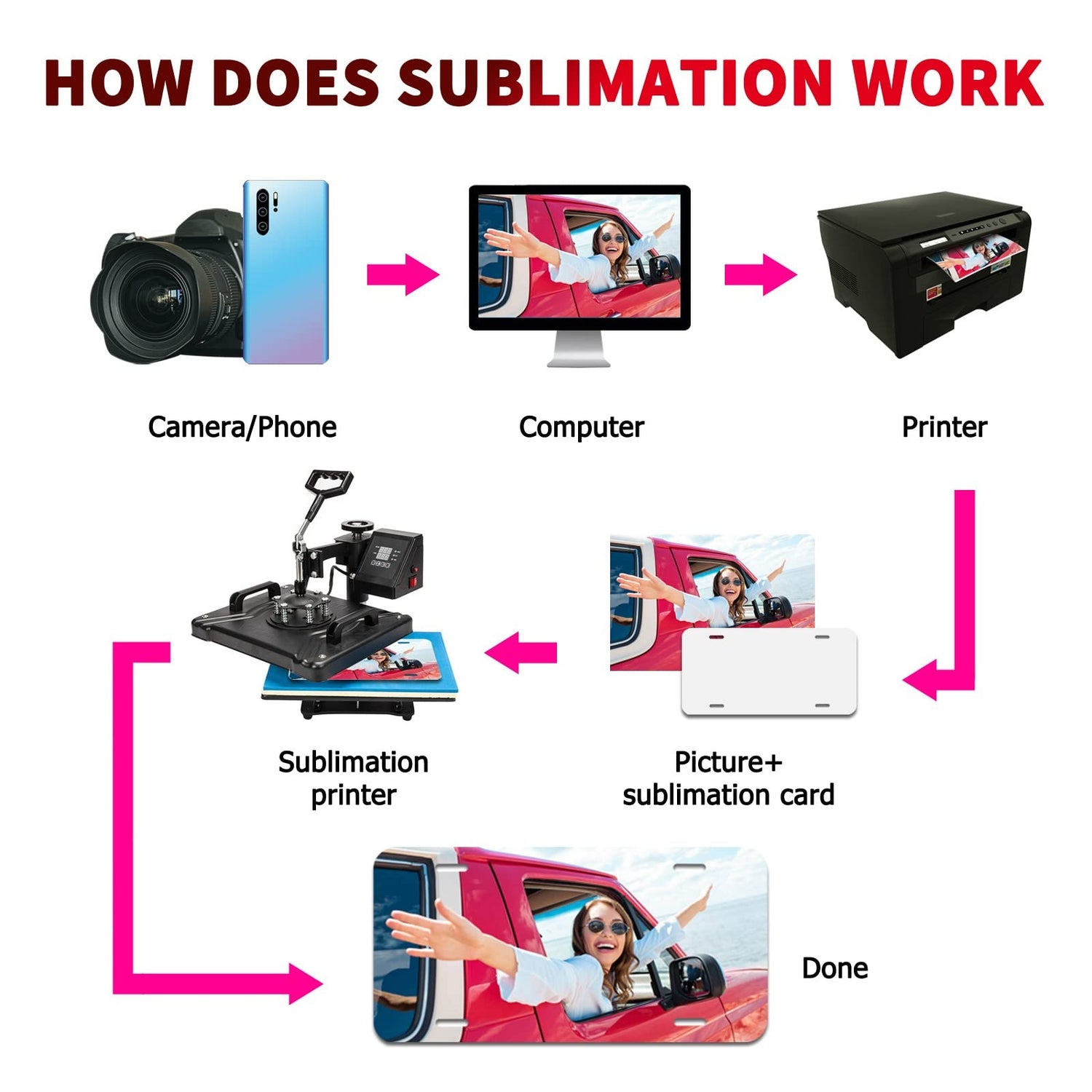 - DIY FUNCTION: The aluminum car license plate adopts the dye-sublimation technology, which can directly print the pattern to the metal part on the back of the shell, with a gloss that is not easy to fade. (Note:Only white is coated The surface can be sublimated) A practical gift for your loved one. The temperature setting is recommended to be 180°C, which is about 354°F, and the sublimation time is recommended to be 60~120 seconds. Please remove the protective film before operation