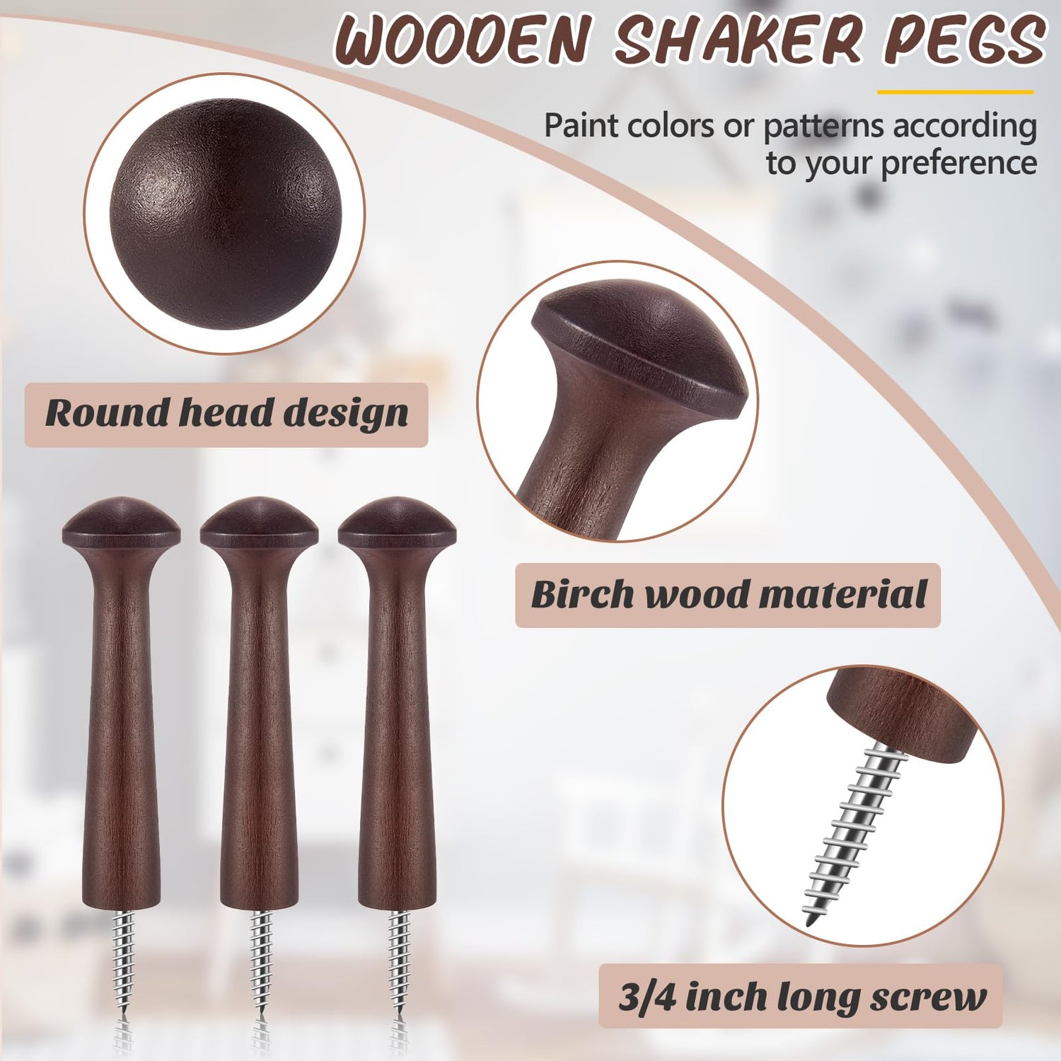 20 Pieces Wooden Shaker Peg Screw-on Pegs 2.9 Inch Long Unfinished Wood Shaker Racks for Hanging Clothes Hats Towel and More DIY Paint Color (Dark Brown)