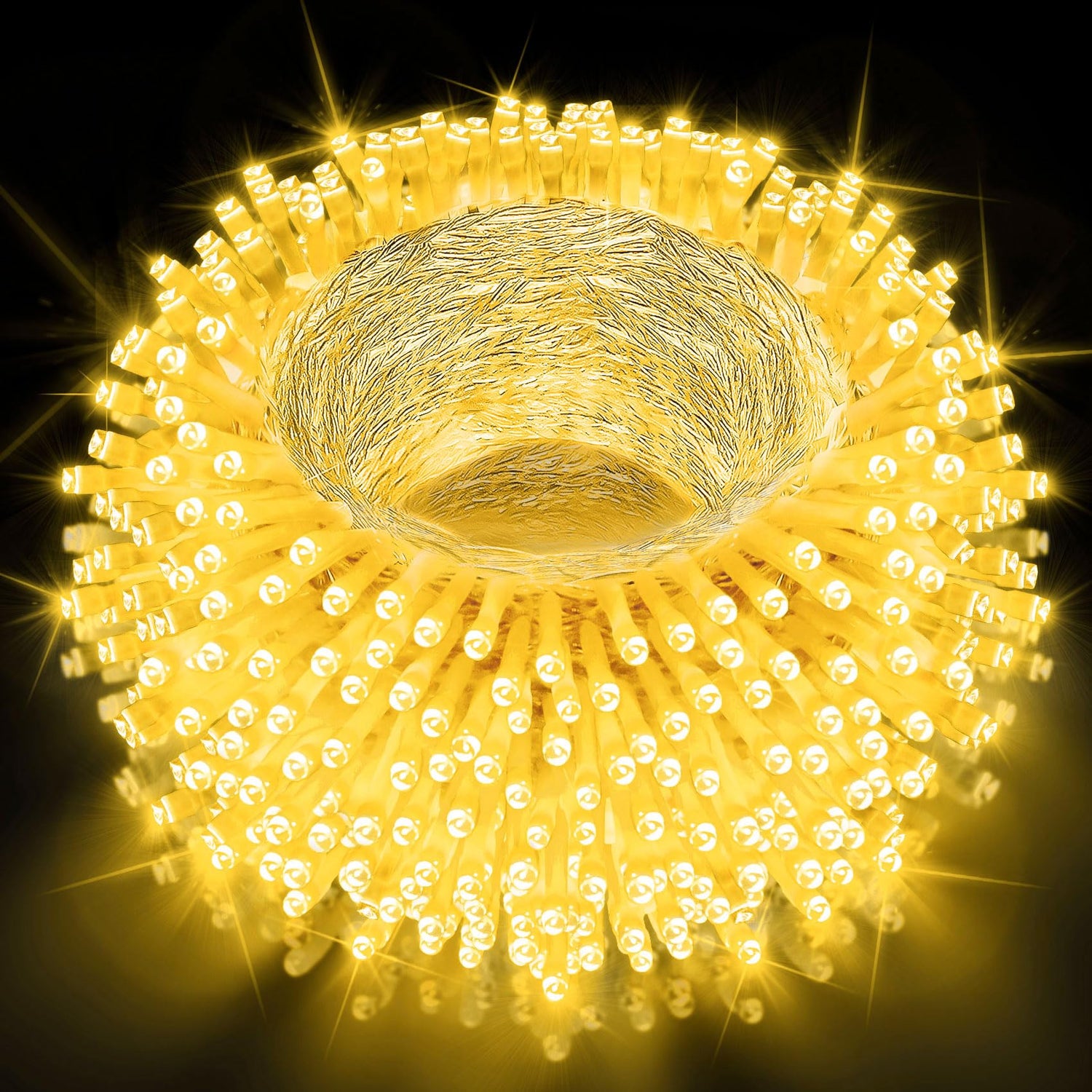 200 FT 500 LED Christmas Lights Outdoor Decorations Super Long Fairy Lights Waterproof 8 Modes Timer Clear Wire String Lights for Outside House Tree Patio Yard Wedding Party Holiday-Warm White