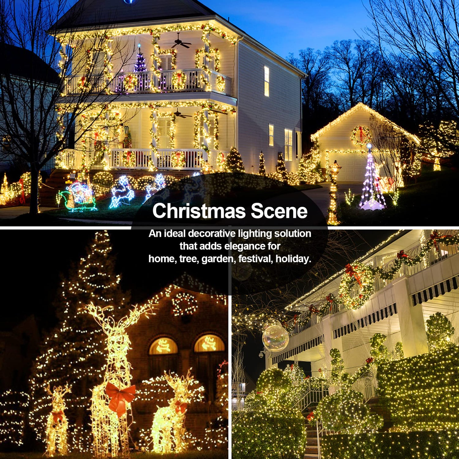 - Super Long LED Christmas Lights: Total Length of this 500 LED Christmas light is 200 ft, and the lead wire length is about 10 ft. No need to expand, a set can meet your large area indoor and outdoor holiday party wedding decoration needs, such as house tree yard garden balcony patio bushes doorways deck curtain ceiling street shopping mall or any other occasion as you like