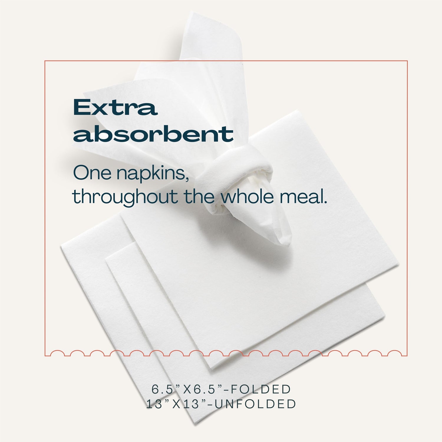 Details: The Linen-Fell disposable white paper Lunch Napkins is made of Premium Quality linen-feel paper for greater softness and absorbency than traditional paper towels and has a 1/4 fold design for compact storage and extra absorbency when folded. It is suitable for drying hands, wiping sink and counter surfaces clean, and other general purpose drying applications. It is typically used in guestrooms and restrooms. Unfolded, each paper towel measures 13 x 13 inches.