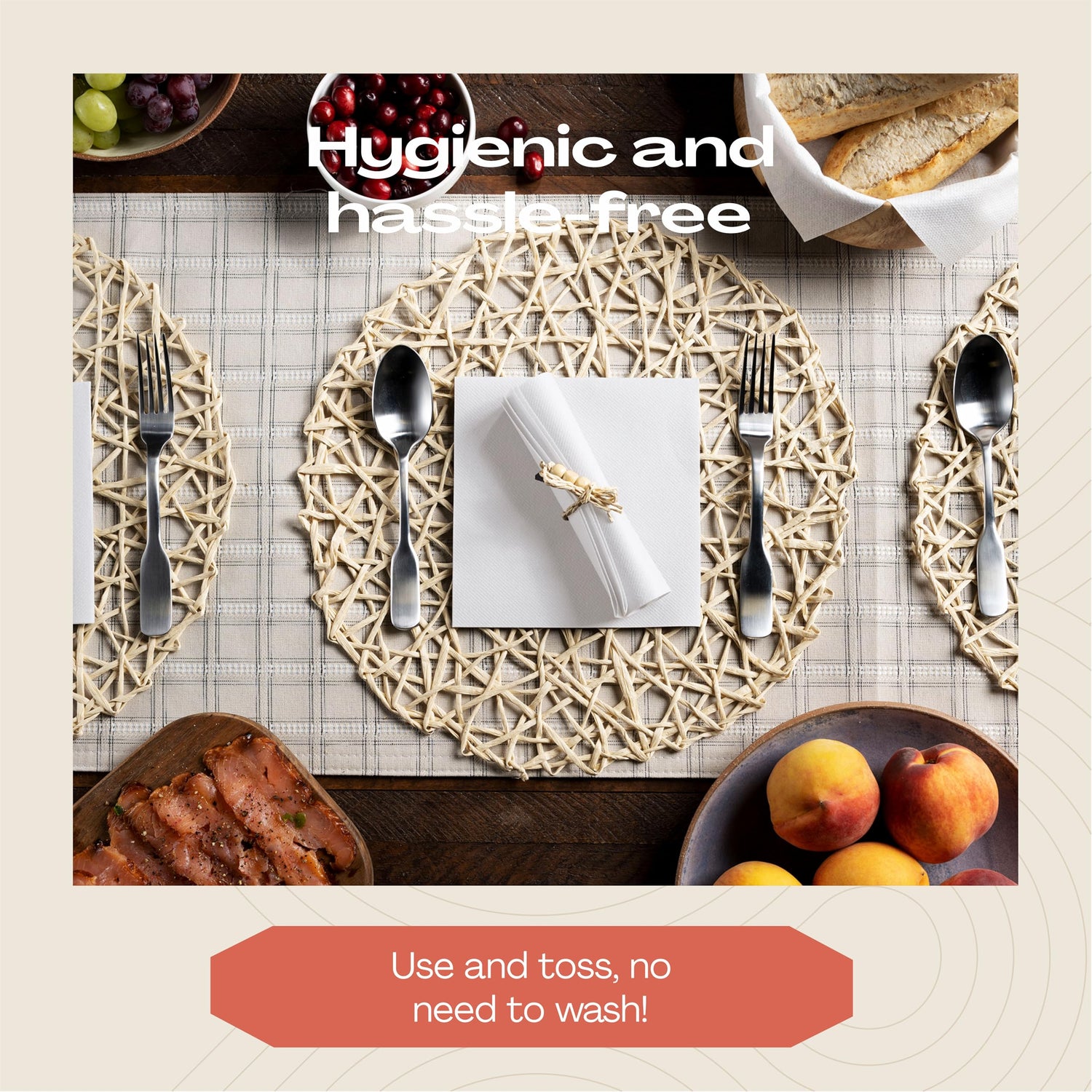 1. Constructed from a dense paper material that feels similar to real cloth linen, but offers the convenience of a disposable product!