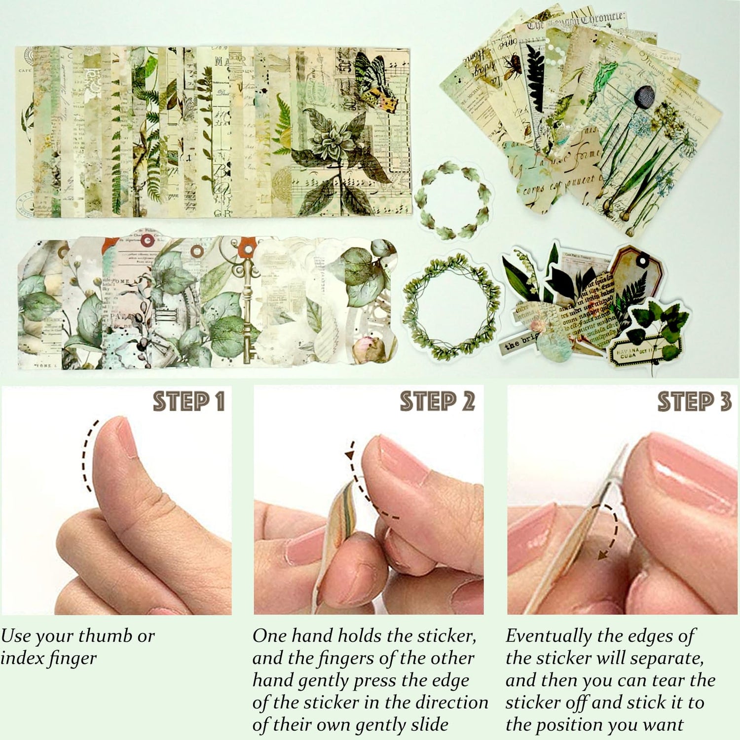 - GREENERY THEMED JUNK JOURNAL EPHEMERA KIT-There are 200 pieces of assorted paper & stickers with A Variety Of Different Styles Of Greenery Pattern Stickers,Paper,Hangtags Perfect for junk journals,scrapbooking,collages,or Greenery-themed art projects!