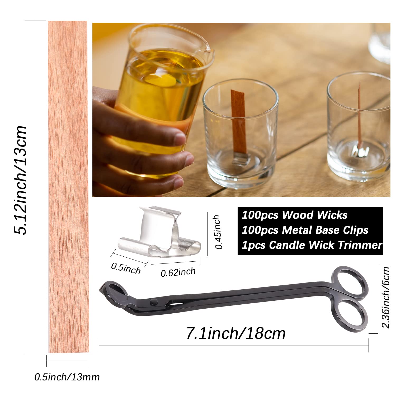 - 🔥Package And Size🔥:100pcs natural candle wicks with 100 pcs metal base,and add a black candle wick trimmer.Enough quantity to meet your various needs.The size of each candle wick is 5.1 x 0.5inch (13x1.3cm),you can make a taller candle than the tins or just make a smaller one as long as you trim the wick.