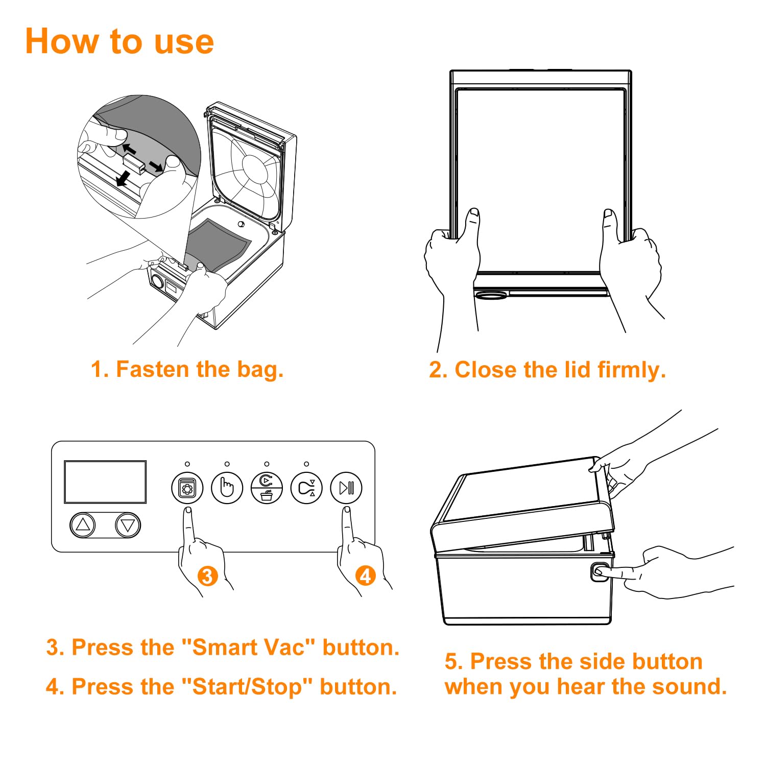 - EASY AND FLEXIBLE CONTROL - In addition to Vacuum and Seal automatically, you can set vacuum time yourself or let the machine do the job with SmartVac.
