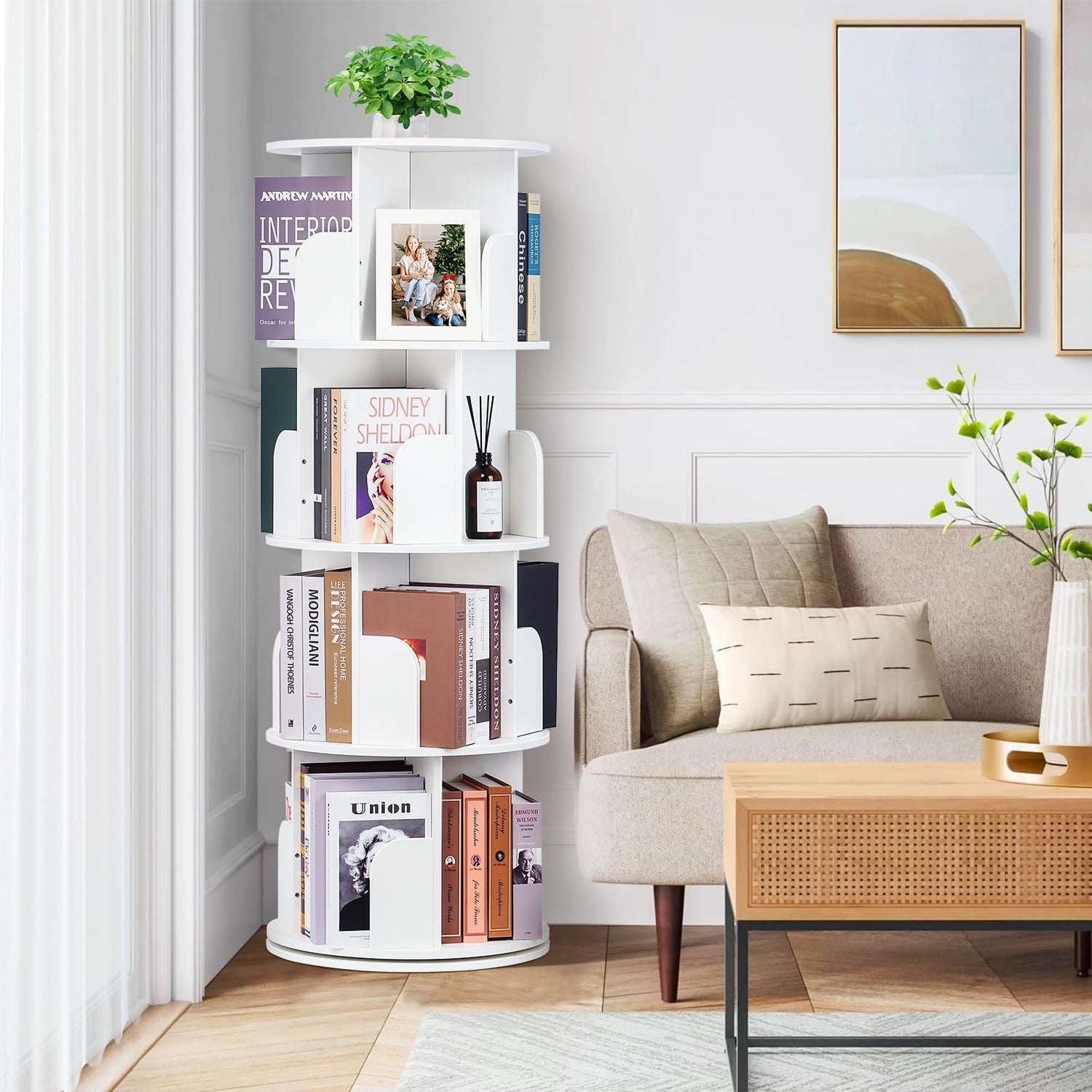 4-Tier 360-Degree Rotating Bookshelf for Kids - Space-Saving Corner Storage Rack in White