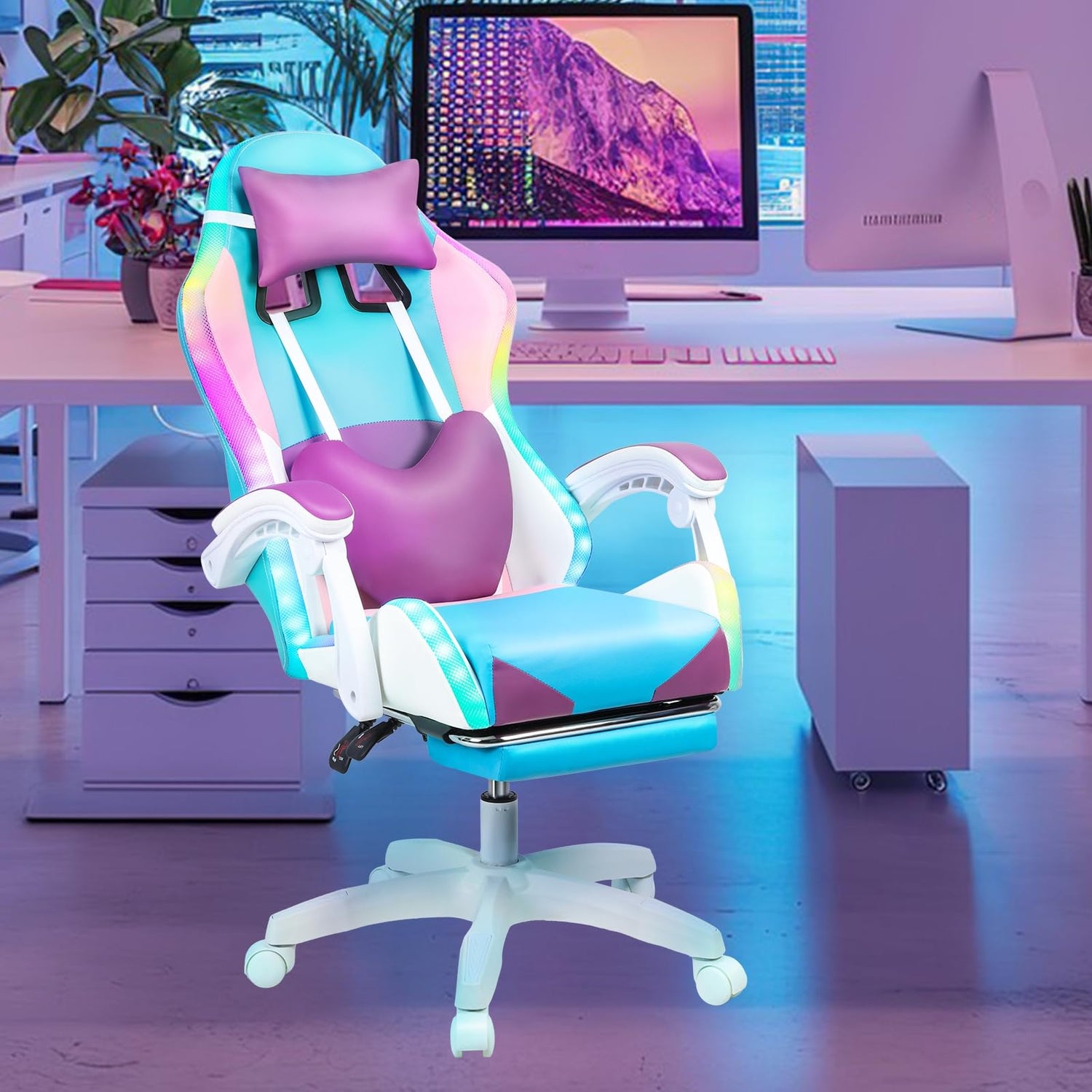 2024 New Gaming Chair, RGB LED Video Game Chairs High Back Reclining Ergonomic Computer Chair with Footrest & Massage Lumbar Height Adjustable Gaming Chairs for Adult Student Gamer Streamer Youtuber