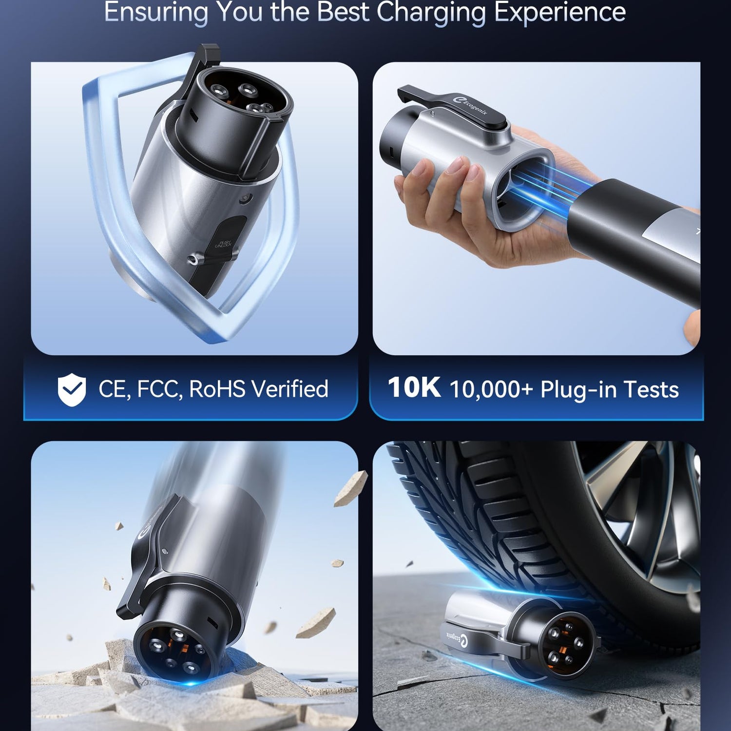 - SUPERIOR DURABILITY: Designed to withstand the rigors of road travel, the Tesla to J1772 charger adapter can endure over 20,000 mating tests and 4,700 pounds of load pressure, ensuring longevity and reliability. With its waterproof construction and high flame retardancy, the Tesla to J1772 charging adapter can handle all weather conditions, is fireproof, and extremely durable. Charge with confidence knowing your tesla charger to j1772 adapter is as resilient as your adventurous spirit.