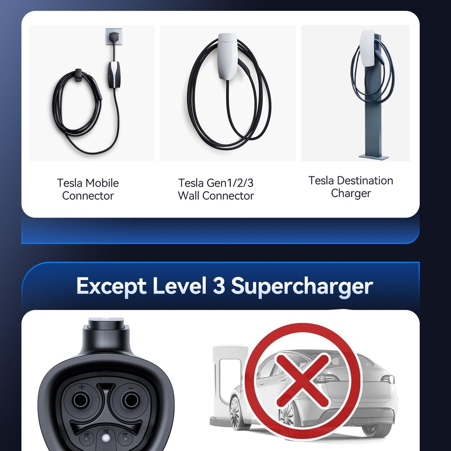 - UNIVERSAL COMPATIBILITY: The Ecogenix Tesla to J1772 adapter allows SAE J1772 EVs to connect to Tesla/North American Charging Standard (NACS) chargers, granting access to 15,000 more Tesla charging stations. Compatible with Tesla destination charger, Tesla wall charger, Tesla home charger, or Tesla mobile charger (EXCEPT Tesla Supercharger), this adapter unlocks Tesla charging options for your J1772 EV, providing true charging freedom. Wherever your adventures lead, finding a charging spot has never been easier.