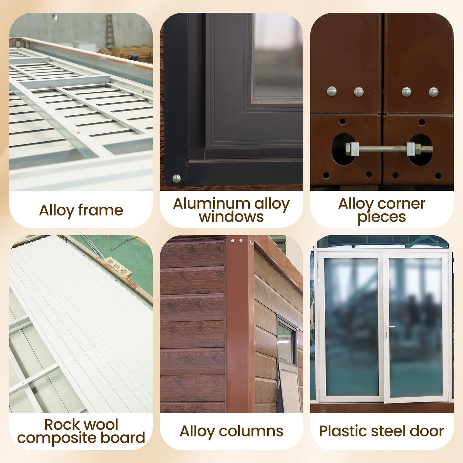 - Comfortable living - This prefabricated small house has several standard large windows, 1 small window for the shower room and 1 glass entrance door. All windows are carefully designed to ensure the best natural lighting throughout the interior. The doors and windows are made of broken bridge aluminum, and the exterior walls and roofs are insulated with flame-retardant foam boards, which have excellent thermal and sound insulation effects.