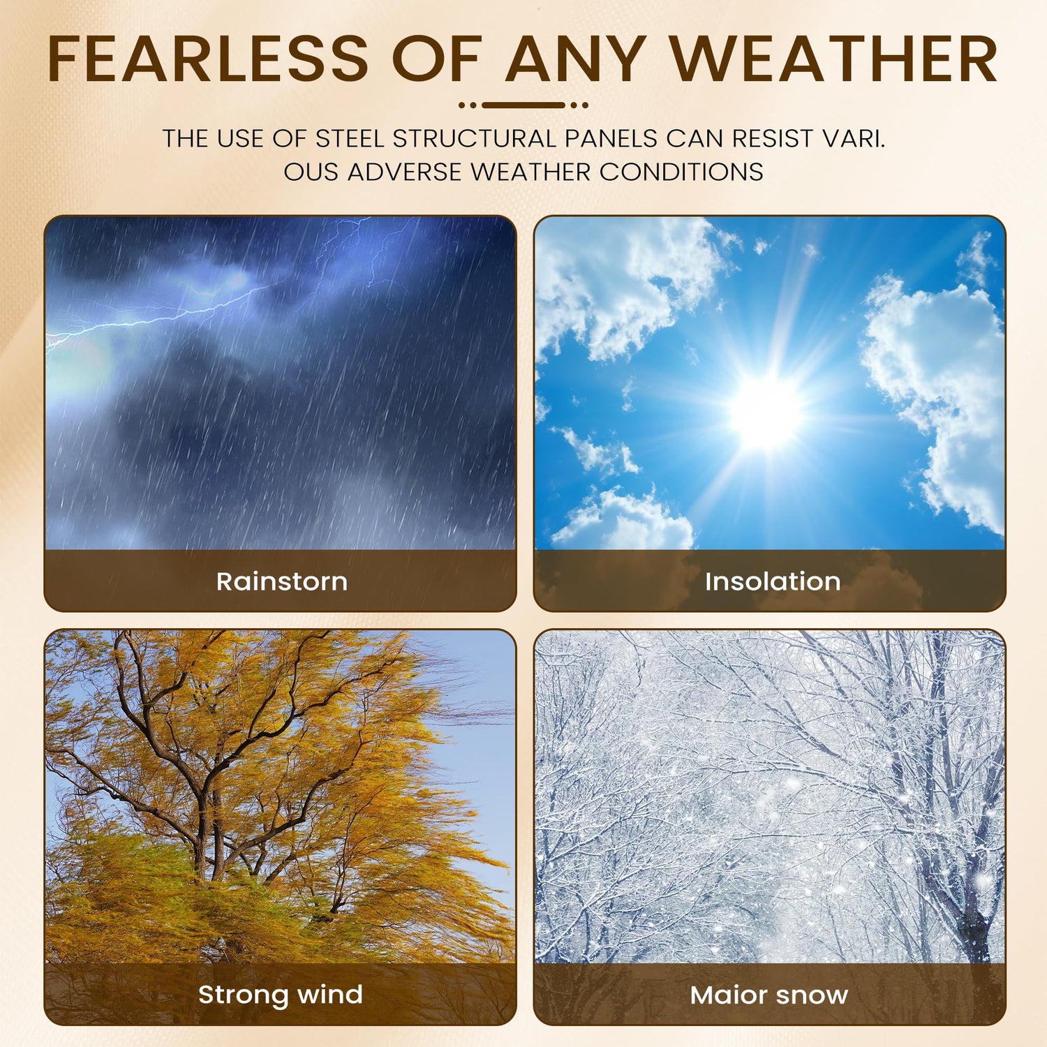 - Safe Structure - The main structure of the container house is made of a sturdy steel frame composed of solid square steel pipes, ensuring the stability and safety of the foldable house. The house has an AAA fire rating, a wind resistance rating of 15, and an earthquake resistance rating of 13. Please note that snow on the roof should be removed regularly during heavy snow, and the snow height should not exceed 9 feet (about 2.9 meters).