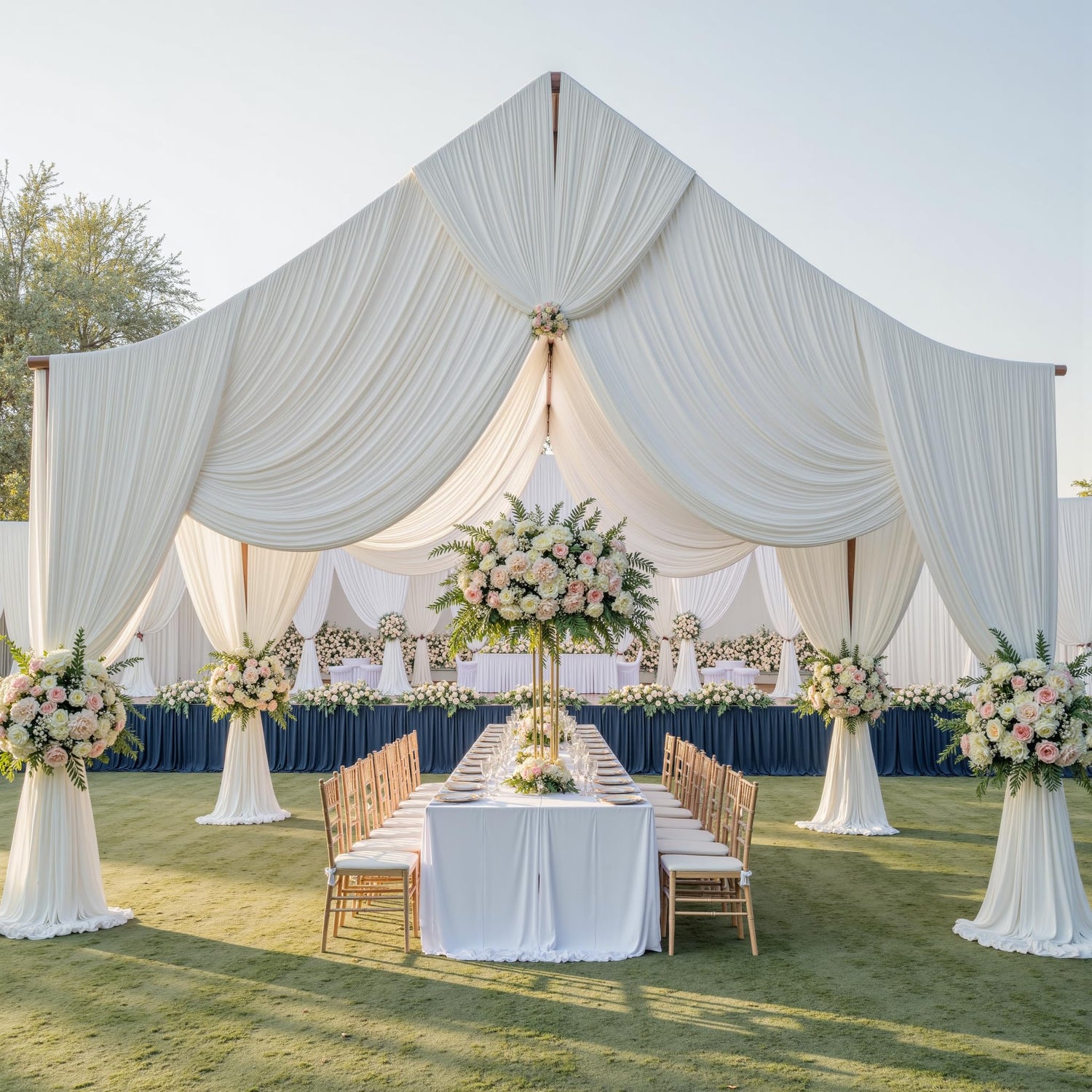 - Extra-Long Brilliance: This draping fabric, with its expansive 30ft Length, allows for grand and luxurious draping panels, making it an ideal choice for creating stunning backdrops, ceiling decor and tent draping that captivate attention.