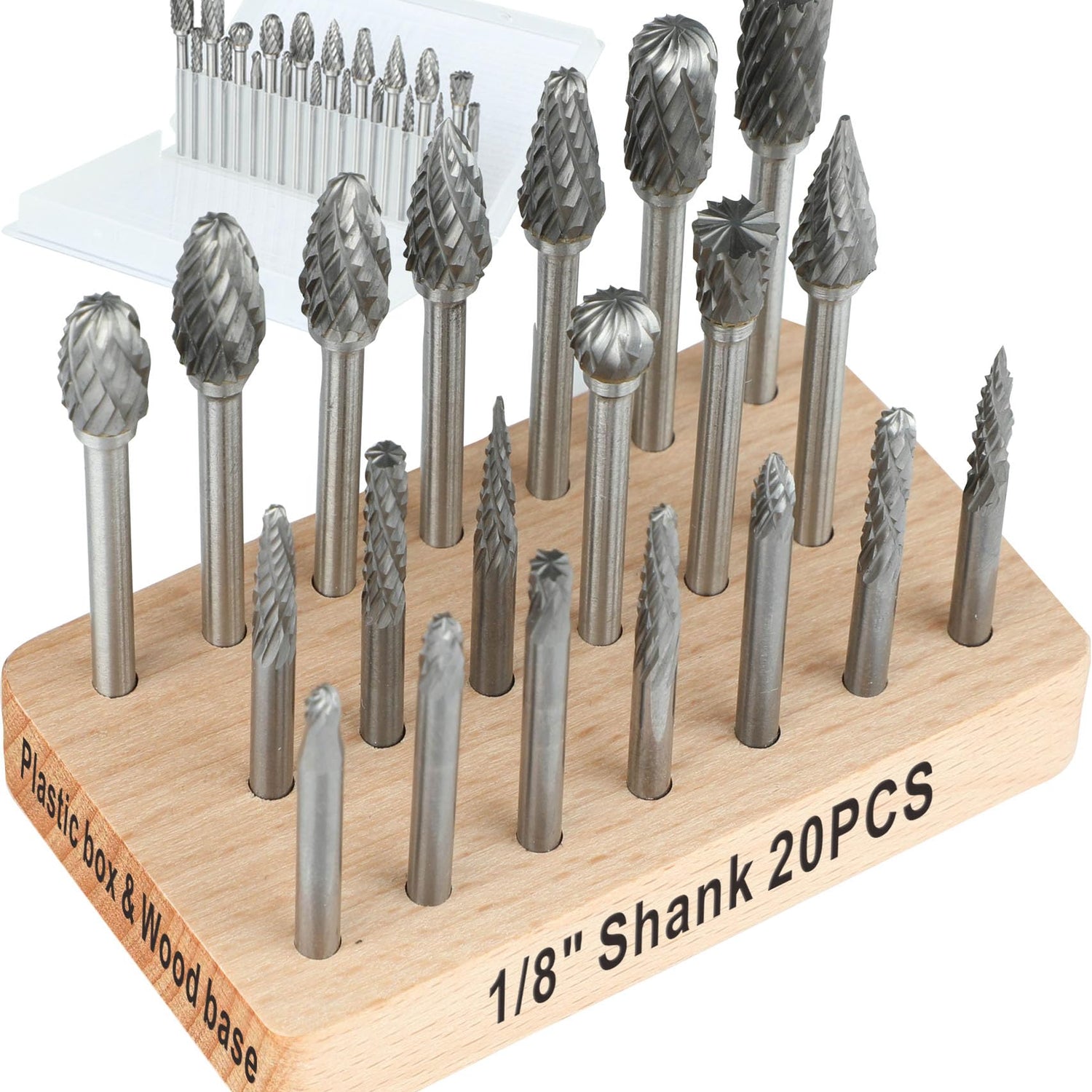 20Pcs 1/8" Shank Carbide Burr Bits Compatible with Dremel w/Beech Holder Bits Metal Grinding Bits Steel Wood Stone Carving Cutting Engraving Grinder Kit Attachment Rotary Tool Accessories Set
