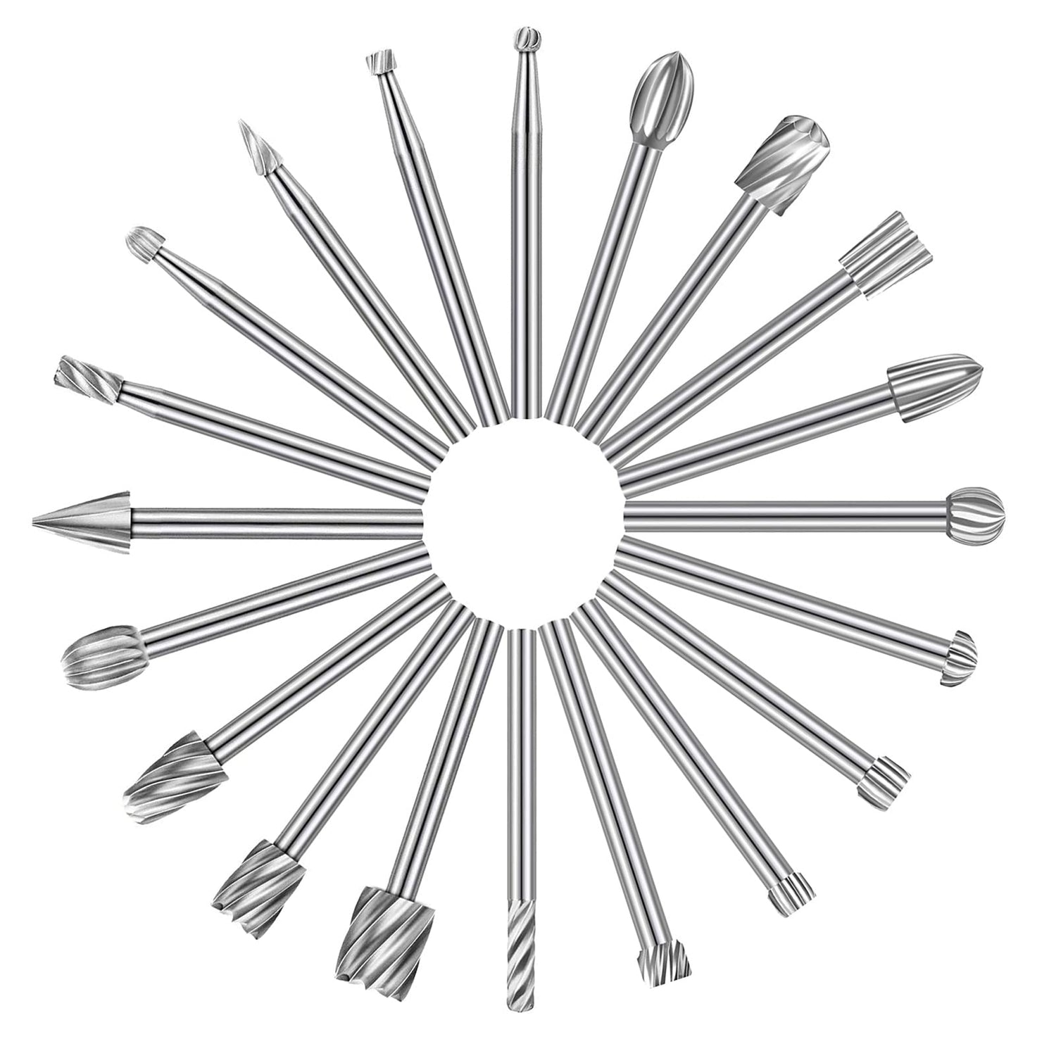 20Pcs HSS Different Burr Set Carving Bits Wood Engraving Router Bit w/ 1/8"(3mm) Shank, Rotary Tools Accessories for DIY Woodworking and Carving