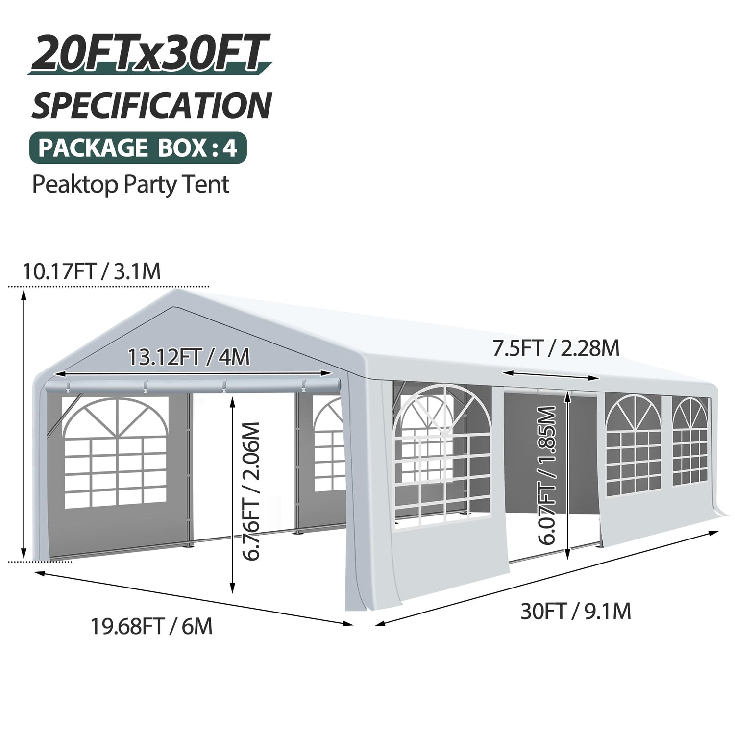 20x30 ft Party Tent Heavy Duty Canopy Tent with Removable Sidewall & 4 Sand Bags, Outdoor Wedding Event Tents for Party (20' x 30')