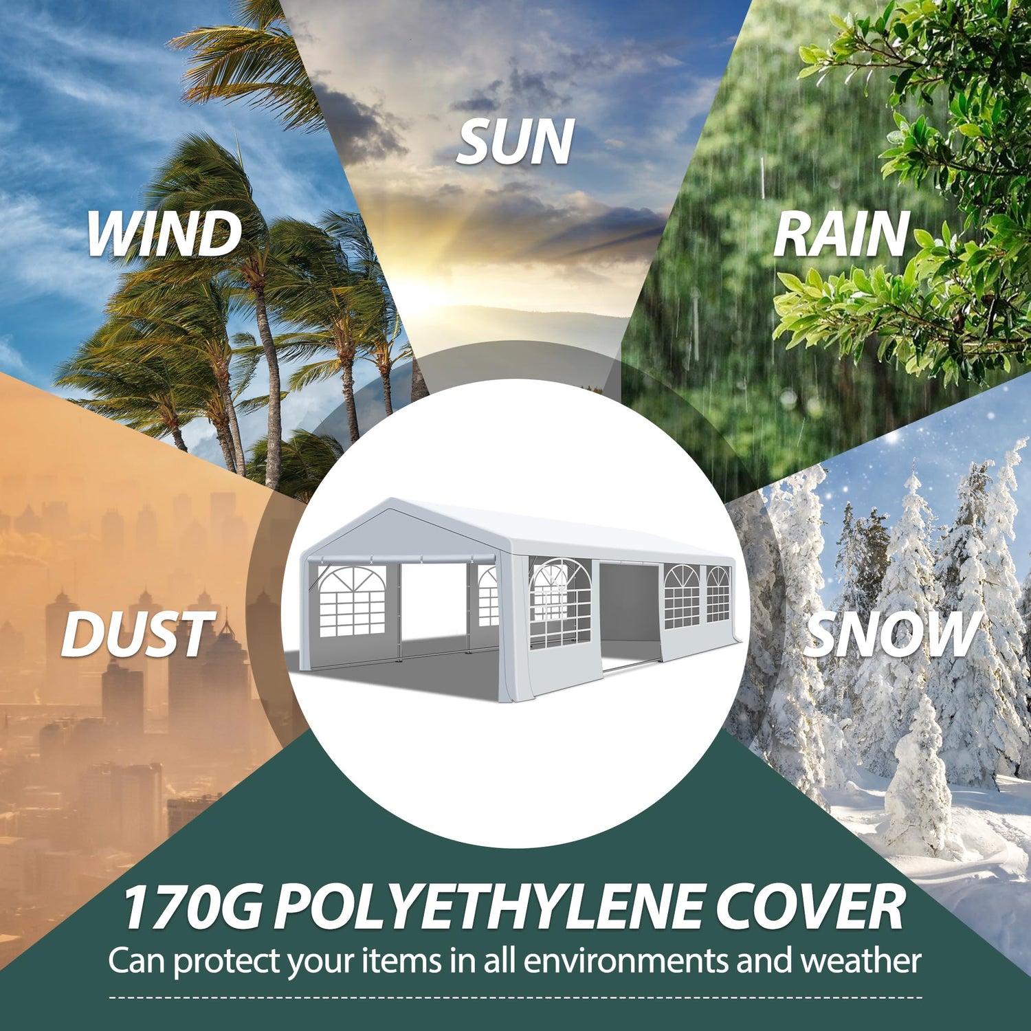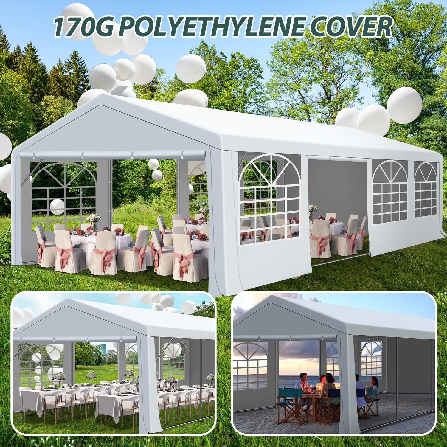 - 【NEW UPGRADED FRAME】: Our product uses a new upgraded galvanized frame, which provides strong support and stability while preventing rust and corrosion, covered with high quality PE, which allows the party tent to block up to 99% of UV rays, perfect for your outdoor use.