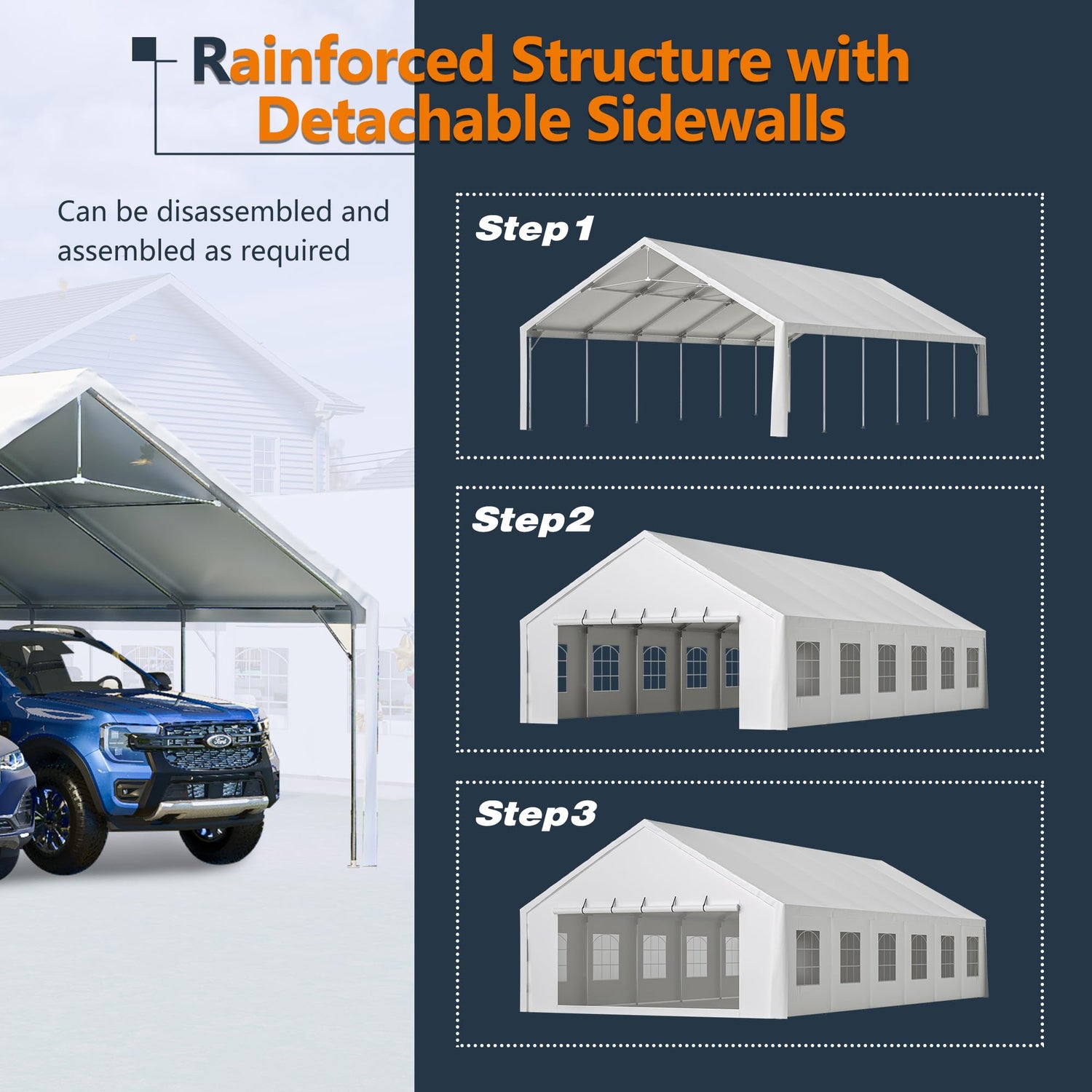 - Weatherproof and UV-resistant Design: Top cover of our white tent is made of 180gsm PE fabric, resist wind,rain,and UV rays for all-weather protection. You can use it for weddings, family gathering, graduation ceremonies, parties, backyard events or any large-scale events you can think of.