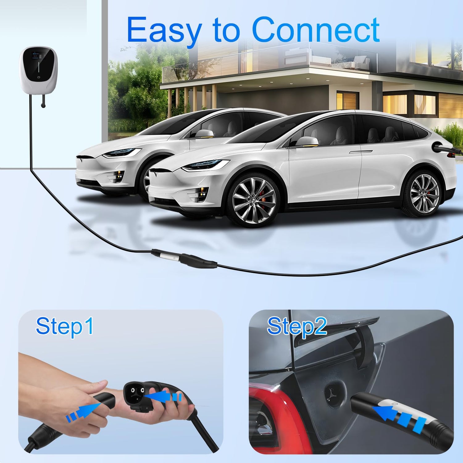 - 【High-Power Compatible】: GUWIEYG fit for Tesla extension cable can support a maximum of 48A at 240V, designed specifically for use with High Powered Wall Connectors, all generations of Destination Chargers, and Mobile Connectors, suitable for all Model - 3/Y/X/S and electric vehicle charging stations. (Note: The button on the cable does NOT control the door on the NACS charge port)