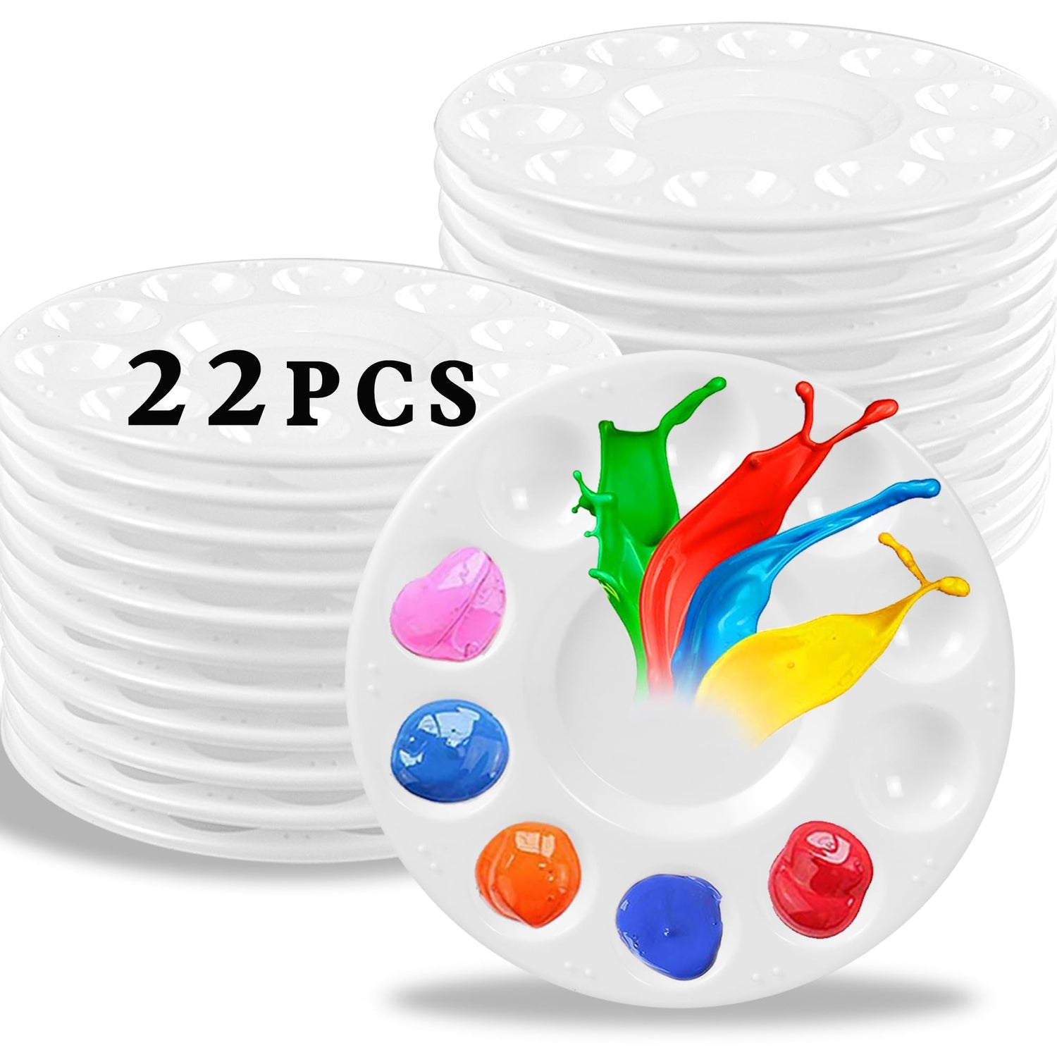 - 【22pcs Paint Pallets】22 x Lightweight Round Paint Trays for Kids & Adults, The huge paint plate quantity give you full satisfaction of usage for a painting class, summer camp outdoor sketching or other activities!