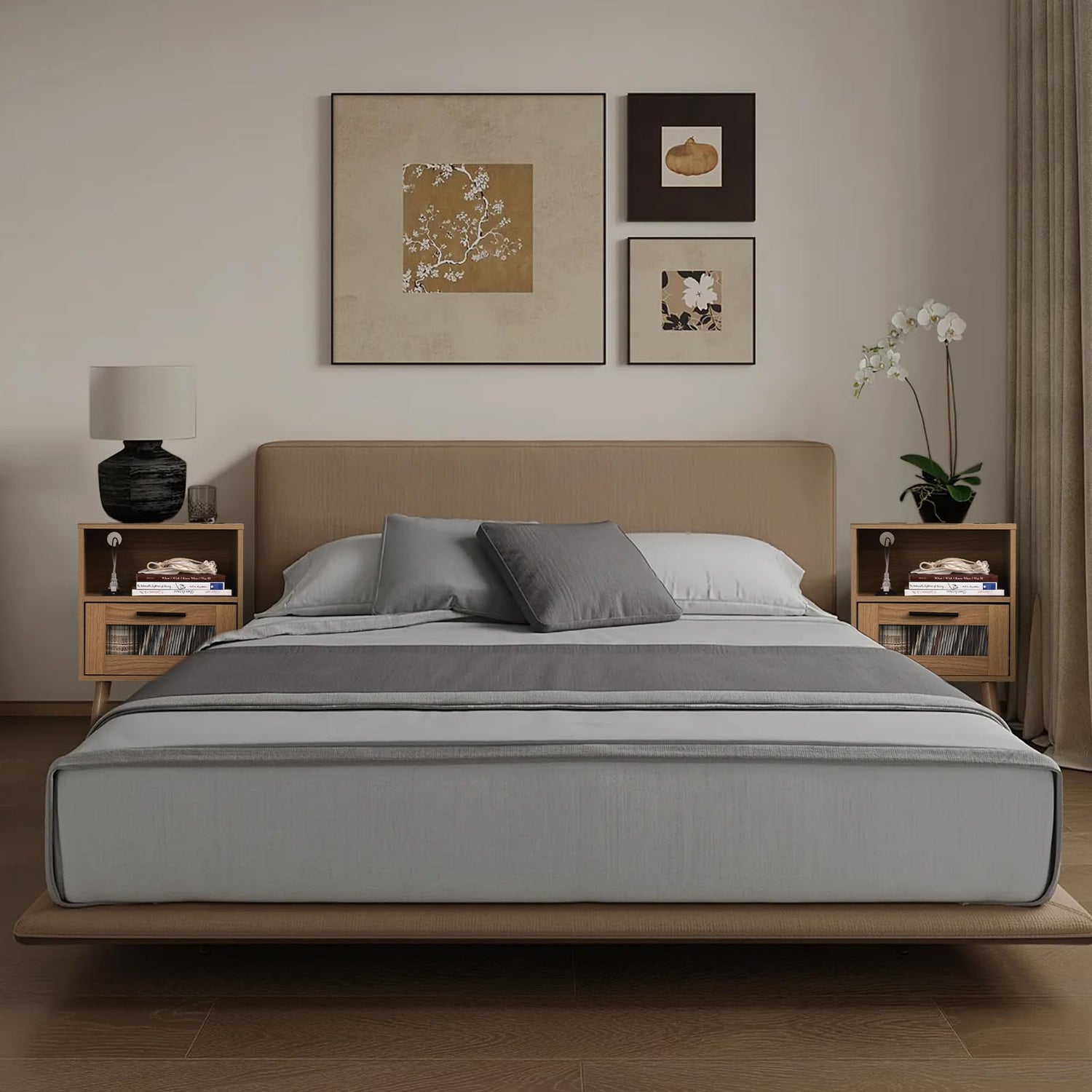 - Sophisticated design:The top and middle open shelves and the drawer with a woven cane front provide you with ample storage space to tuck away all your nighttime essentials in style. Four solid wood legs provide stable support while the anti-slip foot pads protect your floor from scratches
