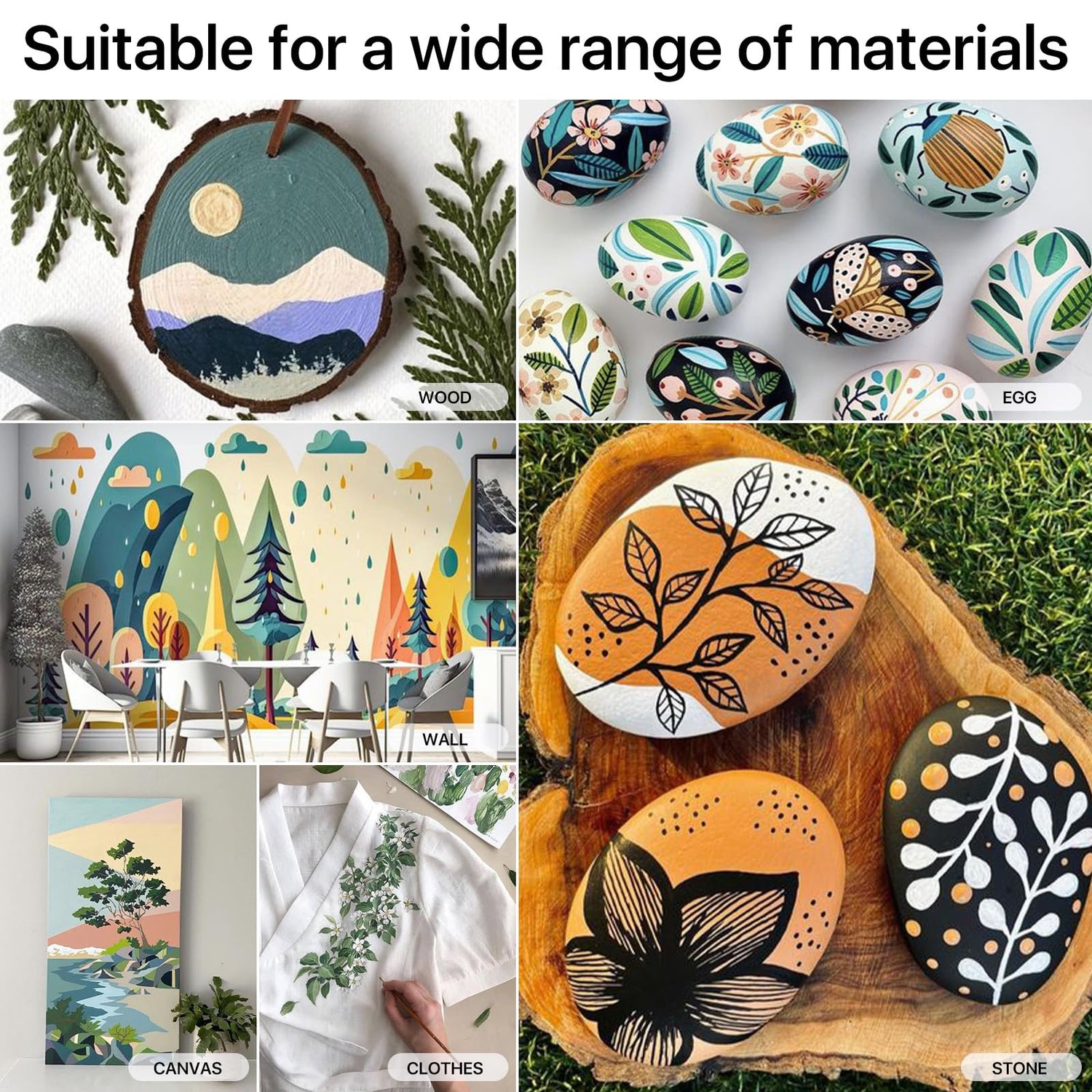 - IDEAL FOR MOST SURFACE: Including wood, glass, canvas, card, craft foam, paper, chalk board, nail, rocks, stone, ceramic, clay, shoe, plastic, fabric, blackboard and more. Come with sponge and paint knife, great gift choice for art enthusiasts, children and professionals ,Also will be a great gift at Christmas, Halloween, Birthday and more festivals. It also comes with a color wheel to help organize colors
