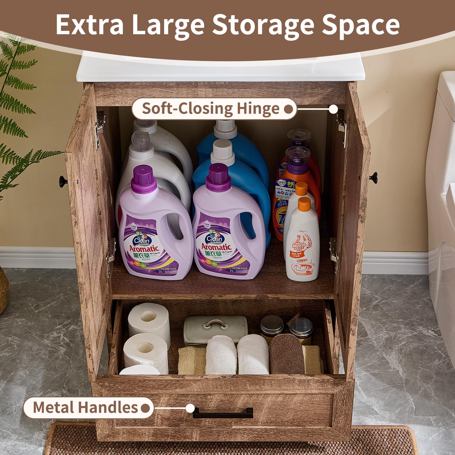 - STABILITY AND EASY TO CLEAN: Bathroom vanity with an integrated ceramic sink that is easy to clean without dead corners, features an overflow, and a deep basin that prevents water from splashing and is highly resistant to impact. The thick base and anti-tip device ensure stability and safety making it a reliable choice for any home. Lasting performance can be maintained with routine care. This thoughtful design keeps rooms tidy and simplifies your cleaning routine