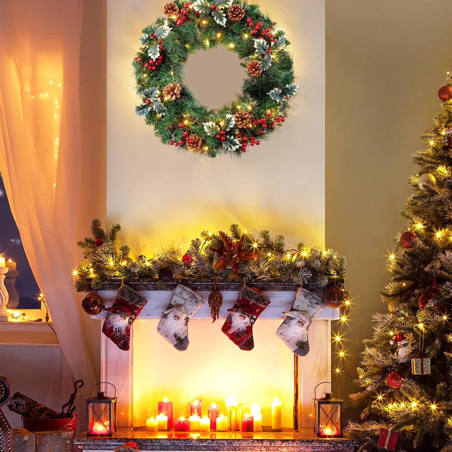 - 【Perfect Christmas Decorations and Handcrafted】24" Christmas wreath is the necessary Christmas ornament to decorate your home. Perfect for Christmas, wedding, home, wall, window, front door, fireplace, living room, bedroom, dining room, mantel, porch etc decor. Great gift for your family and friends.