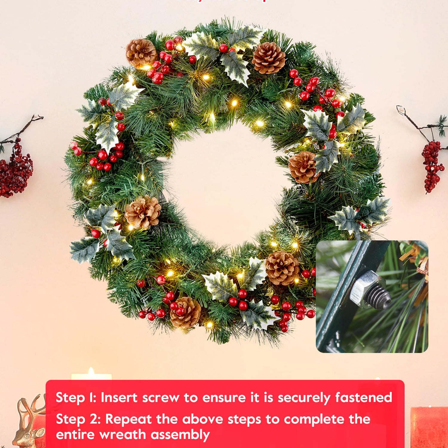 Details: 24 Inch Pre-Lit Artificial Christmas Wreath