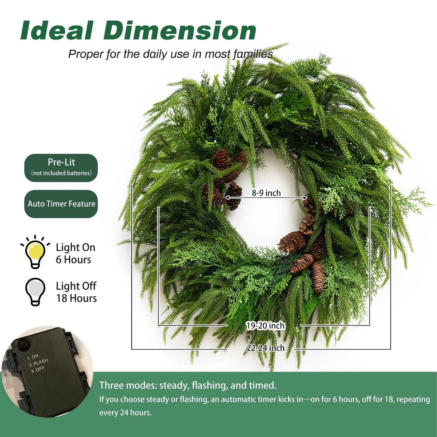 - Original Design:The Soomeir Norfolk Pine Christmas Door Wreath is crafted using the latest manufacturing techniques and premium materials, giving it the appearance of a fresh, lifelike wreath. Each wreath features hundreds of realistic branches and needles, bringing the beauty of nature directly into your home—affordable, effortless, and truly captivating.