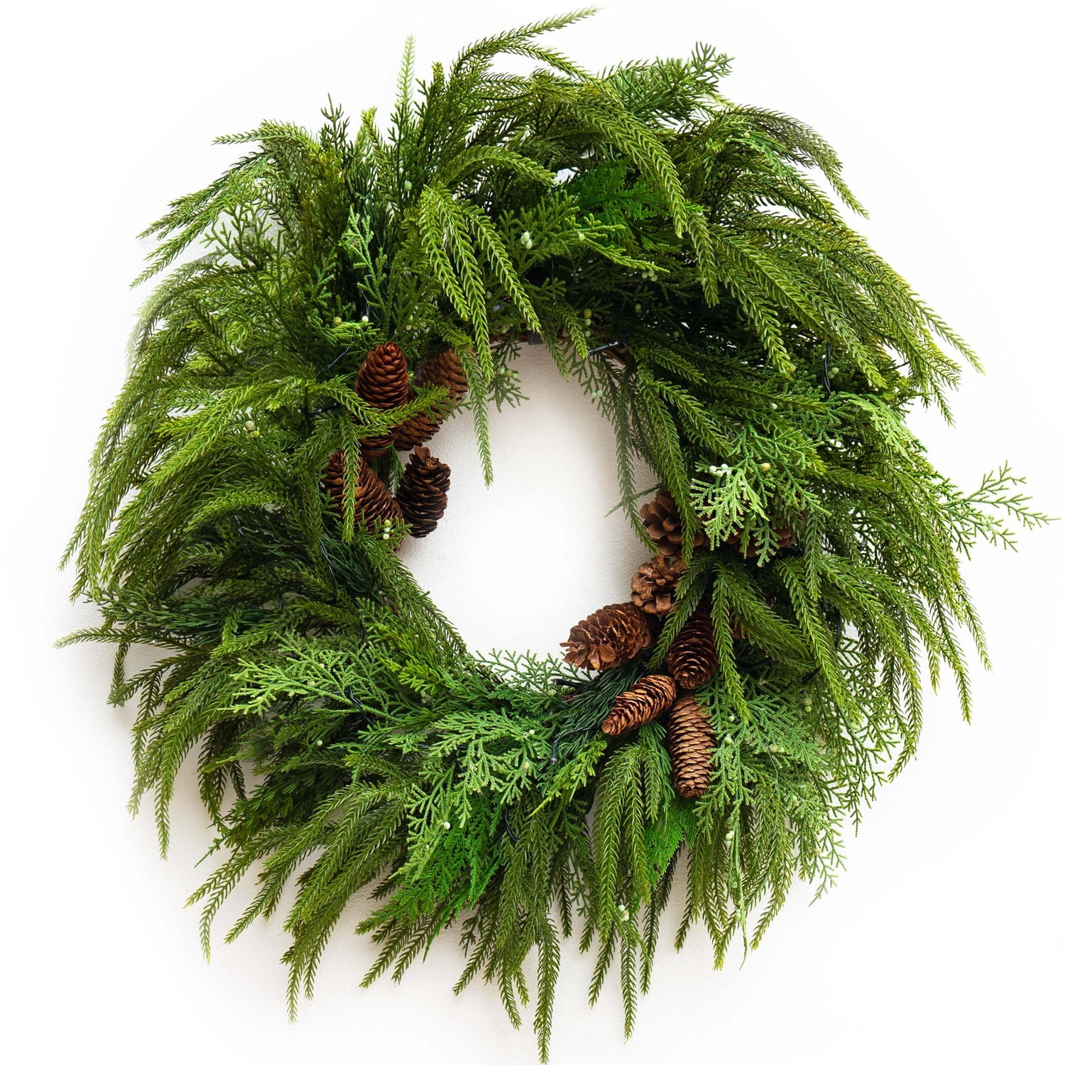 Details: Norfolk Pine Wreath Real Touch Green Winter Wreath Christmas Wreath Home Decor for Window Wall Indoor/Outdoor
