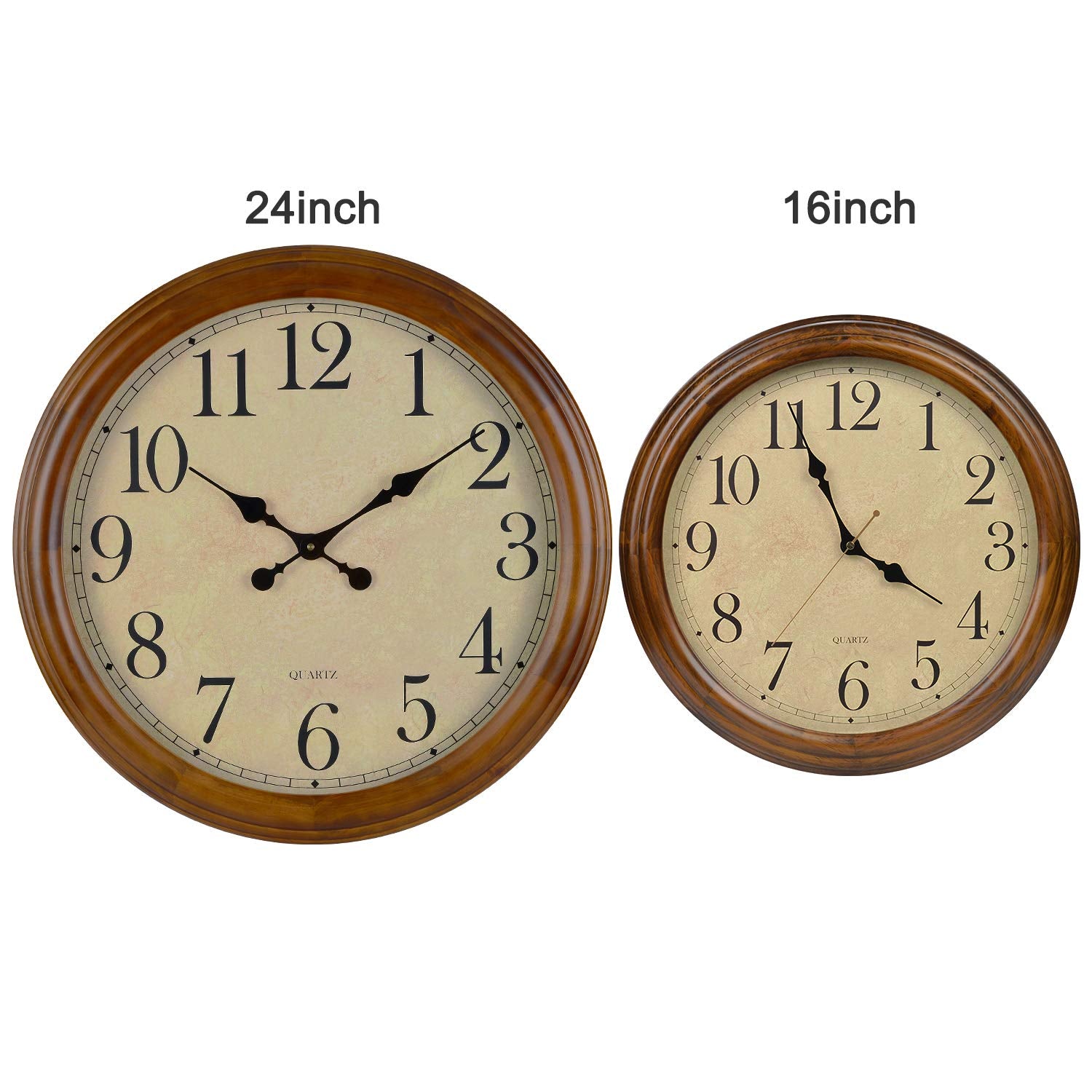 - Large size beige dial with large arabic numerals,black hour hand, black minute hand,easy to read time.Glass can prevent the clock from contaminate dust and make cleaning easier.The clock does not need to be assembled,it is easy to hang anywhere.Diameter: 24 inches, thickness: 1.9 inch, weight: 9 pounds.