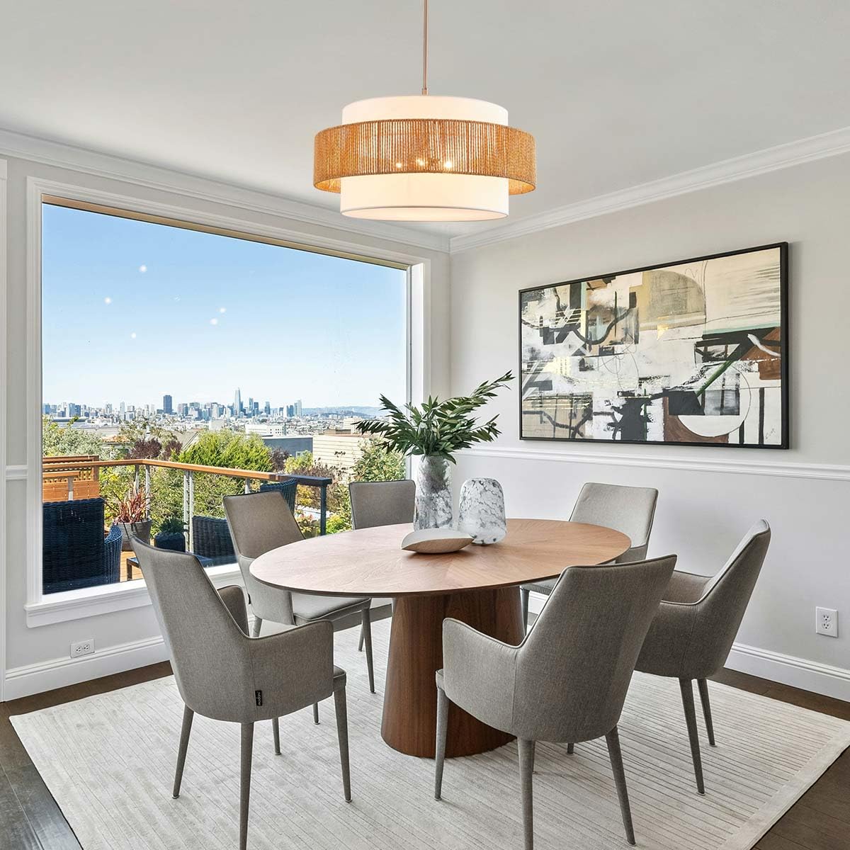 - 【Rattan Design】The rattan drum chandeliers decorated coastal and bohemia style,The light shines gently through the woven rattan to make your room more warm and elegant.