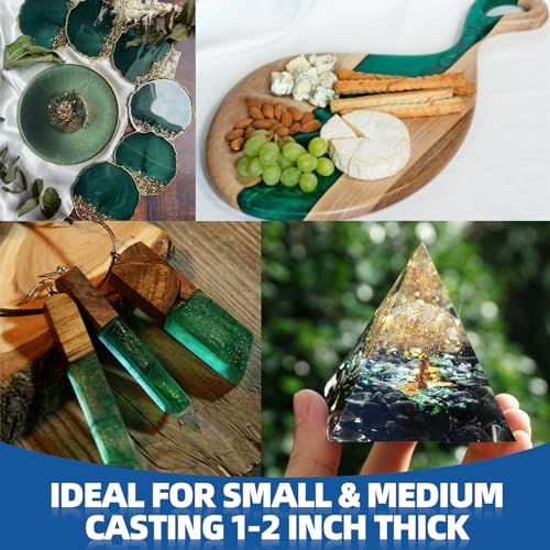 - 1-2 INCH DEEP POUR & IDEAL USAGE: Our specialized formulation allows you to confidently pour up to 2 inches at once, eliminating concerns about thickness limitations. Perfect for various applications, including charcuterie boards, serving trays, resin coasters, and small castings.
