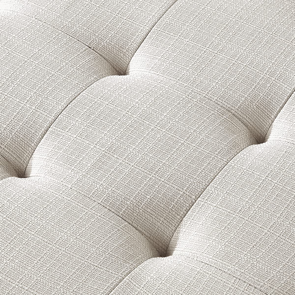 24KF Large Rectangular Upholstered Tufted Linen Ottoman Bench, Padded Bench with Solid Wood Shelf-Ivory