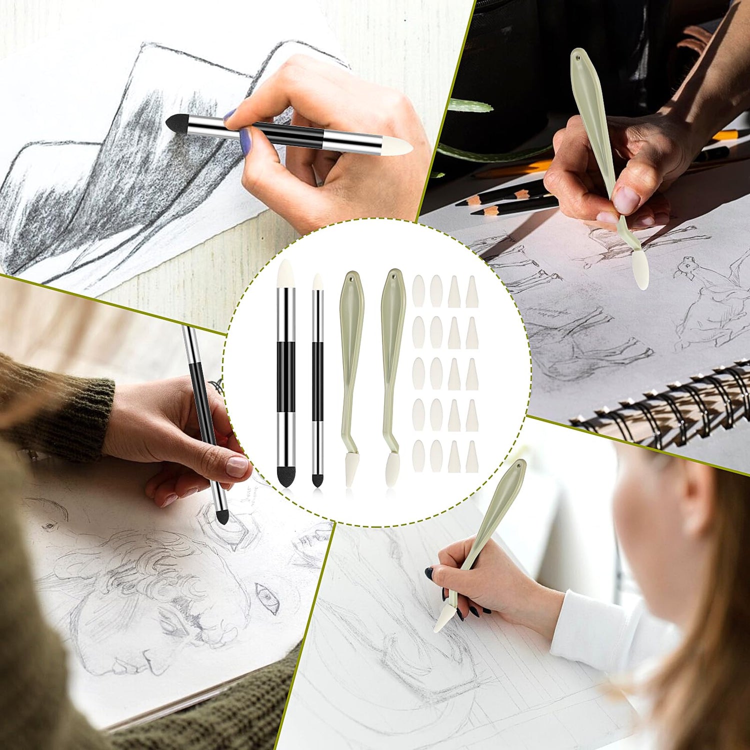 - Wide Applications: This mixed sponge brush set is an ideal practical tool for art enthusiasts and beginners,such as blending colors, softening lines, cleaning slide, creating shadows, blurring effects and edge adjustment, correction, and final drawing touch-ups to meet your various needs. It allows you to easily and conveniently use sketch blending for corrections, blending, and coloring, displaying beautiful gradients and shadows in your artwork