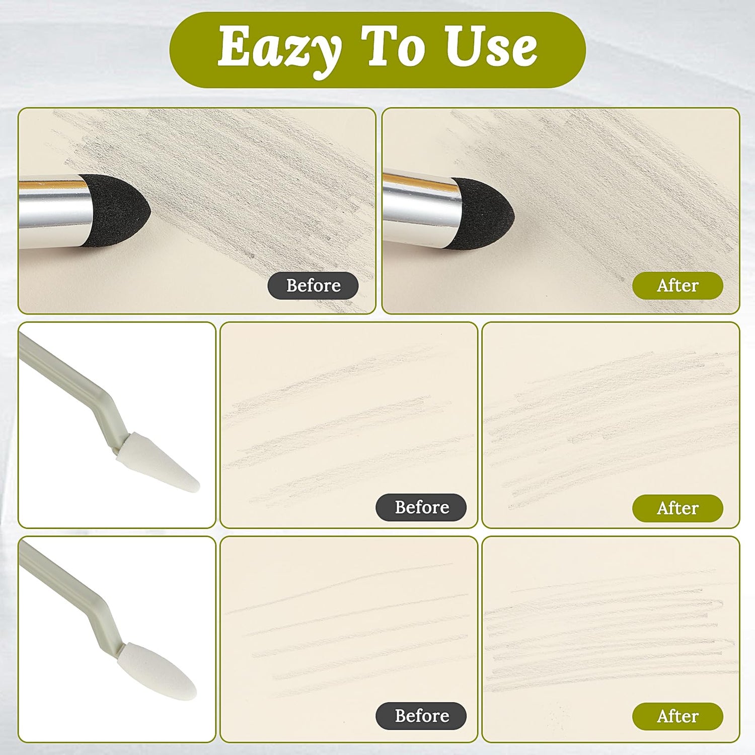 - Reliable Materials: The sketch artist blending sponge pen is made of high-quality sponge, felt, and ABS. The black tip is made of sponge, while the white tip is made of felt, helping to smoothly blend different facets. The sturdy ABS shell is durable, comfortable to hold, and has a long service life, while the soft tip is gentle and delicate, without damaging the paper. The soft sponge tip is reusable, durable, and not easy to peel. It is effortless to wipe off and provides a pleasant experience
