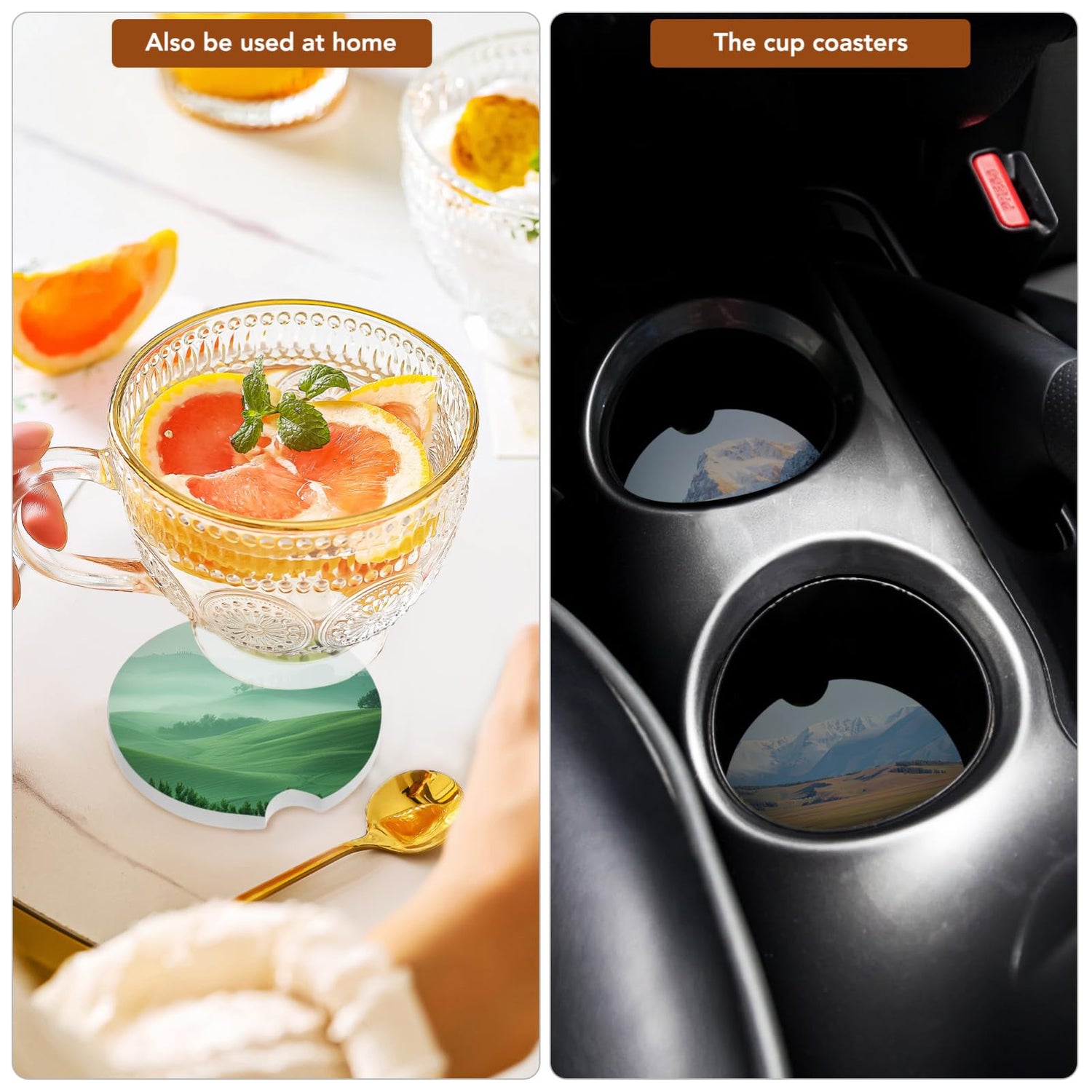 - 【Cup Coasters for Avoiding Stains】These ceramic coasters are not only car coasters, it is also suitable for kitchens, offices, bars, restaurants, homes and other occasions and can be easily paired with any type of décor and home decor. You can place a few of them in your car or on your dining table to protect your car interior or tabletop from spilled drinks and food stains.