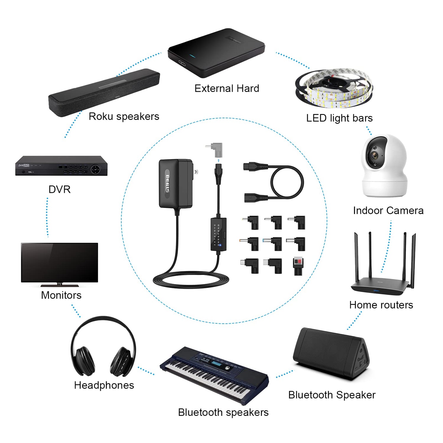 - [Compatibility] Universal 24W Replacement Adapter Suitable For Routers Speakers CCTV,LED,Variety of Home Electronics. for example Jbl Speark, Bose Soundlink I , II , III, TP-Link ac1750, Yamaha Psre373, ModuleLights, omron arm Blood Pressure Monito, Portable Fetal Sound Meter, Sweeping Robot etc
