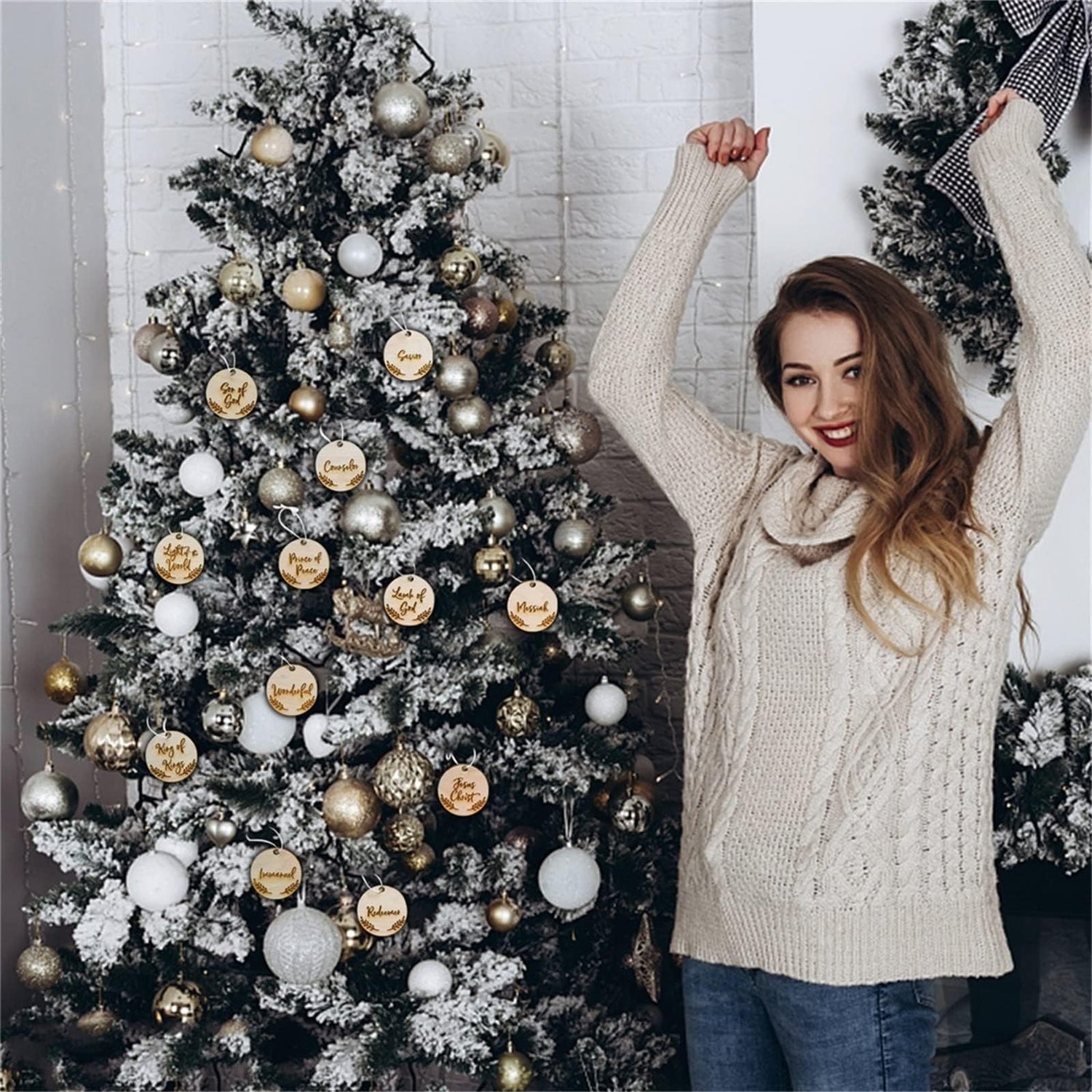 25 Pack Names of Jesus Ornaments, 5 cm / 2 inch Diameter | Name of Jesus Advent, Wood Hanging Ornaments with Savior Names, Ornaments for Christmas Tree Decor