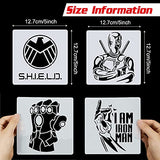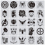 Details: Package includes: 25 pieces plastic stencils, including 10 Marvel superheroes and 13 their logo, add Avengers logo, S.H.I.E.L.D. logo. Why Choose Our Superhero Stencils for Crafts Reusable? 1.This superhero stencil templates set is made of durable and flexible PET material, 2.It has smooth surface allowing you to apply them on most flat surface. 3.This superhero template is very suitable for home, party, and even office decoration. 4.The superhero stencils set can be offered as a gift to children, students, teachers, and your friends.Early education tool, cultivate thinking of art since childhood. Specifications:: Material: Environmental friendly PET Size: approx 5 x5 inch,12.7 x 12.7 cm Reusable and washable, easy to clean & use. What You Will Get: 25 x superhero Stencil