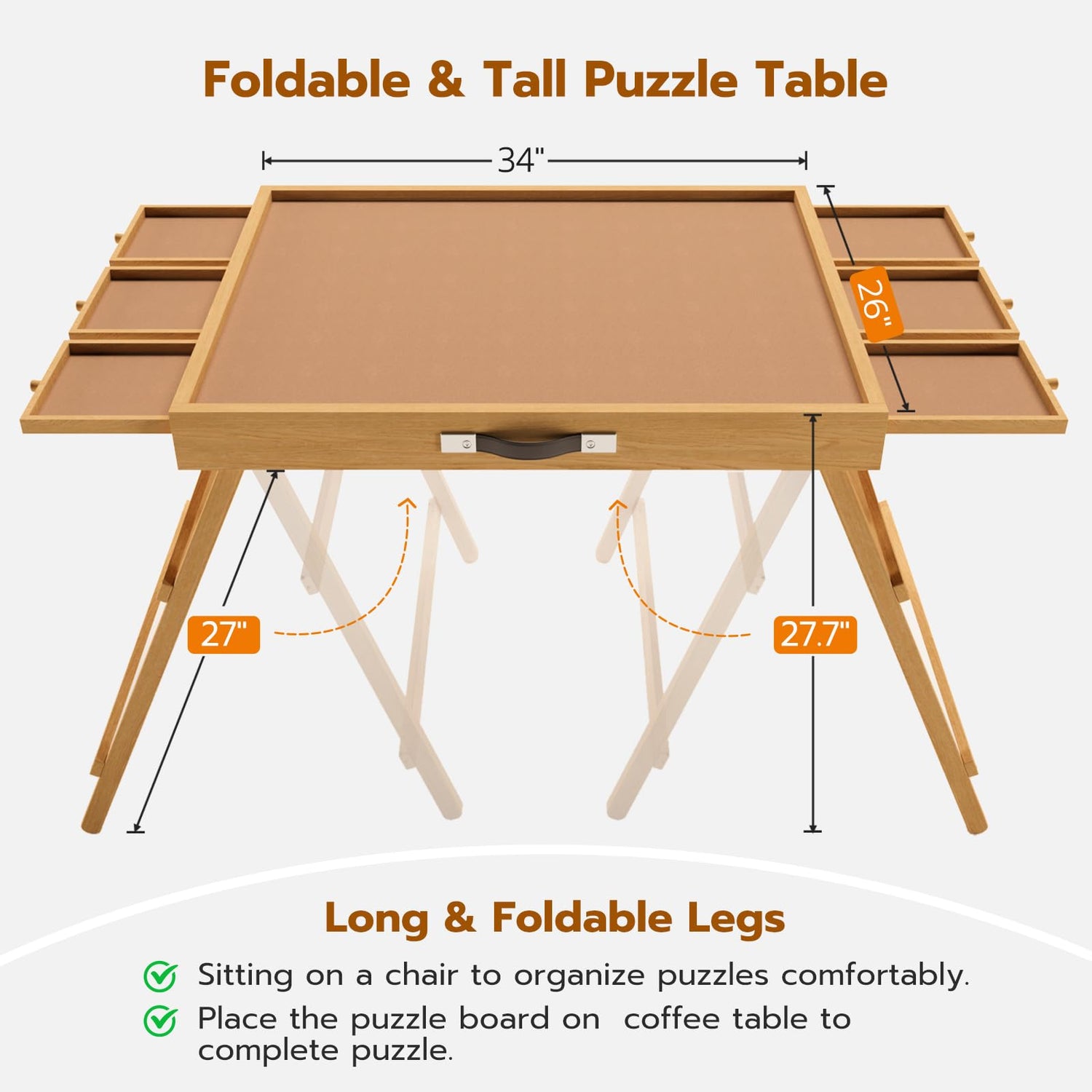 27.7" H Tall Puzzle Table with 6 Drawers, 1500 Pieces Jigsaw Puzzle Board with Folding Legs & Protective Cover - 34" x 26" Portable Table for Adults