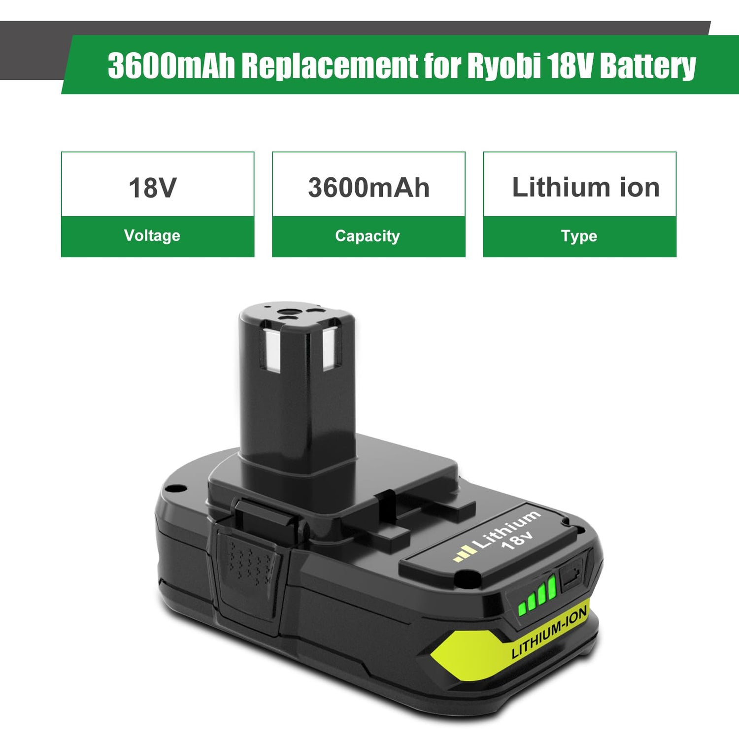 - 【Battery Information】Battery Type: Lithium| Voltage:18v |Capacity: 3600mAh| Replacement for Ryobi 18 Volt Battery;2Packs Replacement for Ryobi 18 Volt Battery