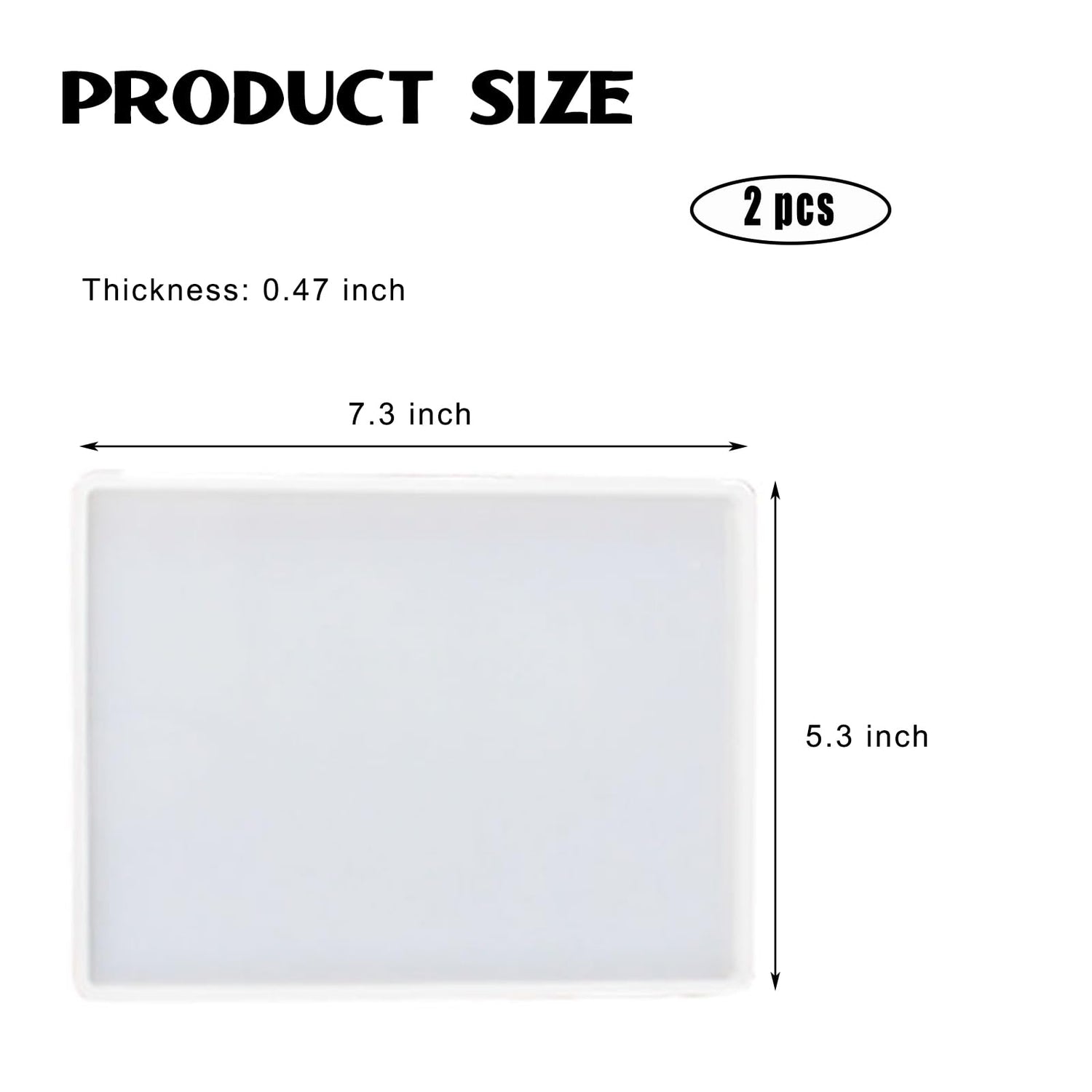 - 【PRODUCT SIZE】 You will receive 2 rectangular silicone molds, enough for your daily crafting. Each mold is about: 7.3 inches long, 5.3 inches wide and 0.47 inches high.The finished product made by this rectangular silicone mold is flat and rectangular without grooves and handles.