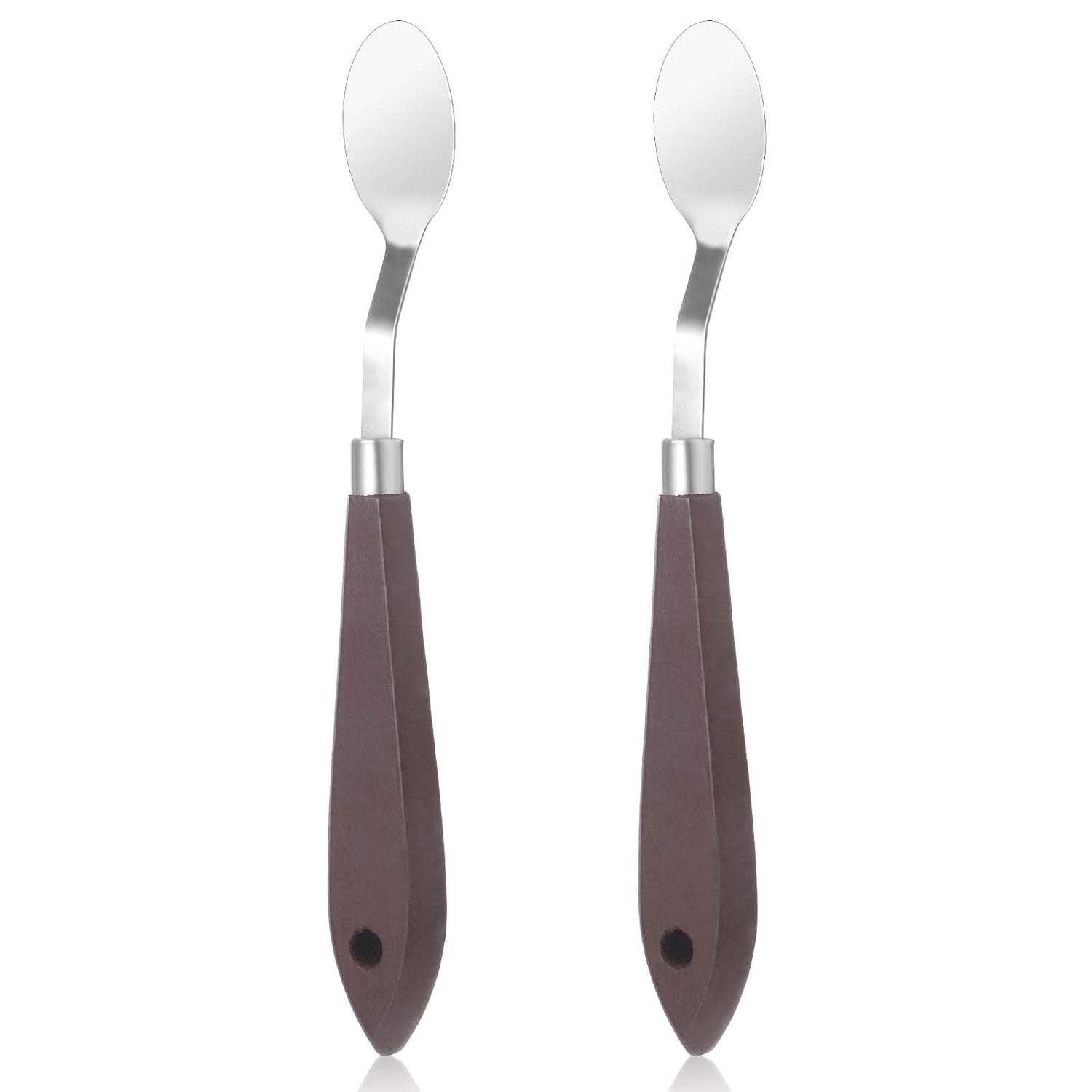 2Pcs Palette Knife No.20 Palette Knives 22mm Width Pallet Knife Stainless Steel Oval Art Paint Spatula with Wood Handle Metal Palette Knife for Oil Acrylic Canvas Mixing Spreading Cake Decorating