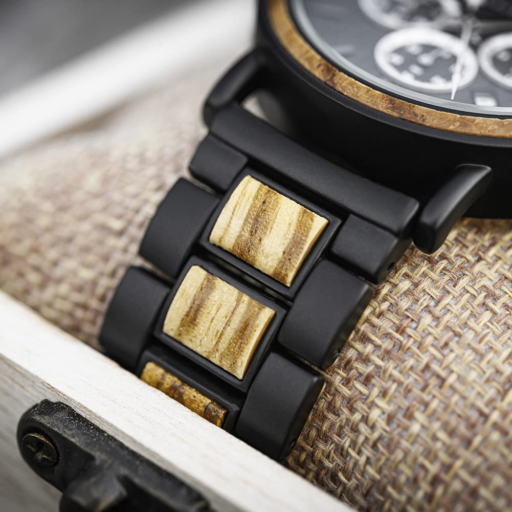 - 💕Natural Zebra Wood: This watch combined with natural zebra wood and black stainless steel will bring you a visual enjoyment when worn on your hand.