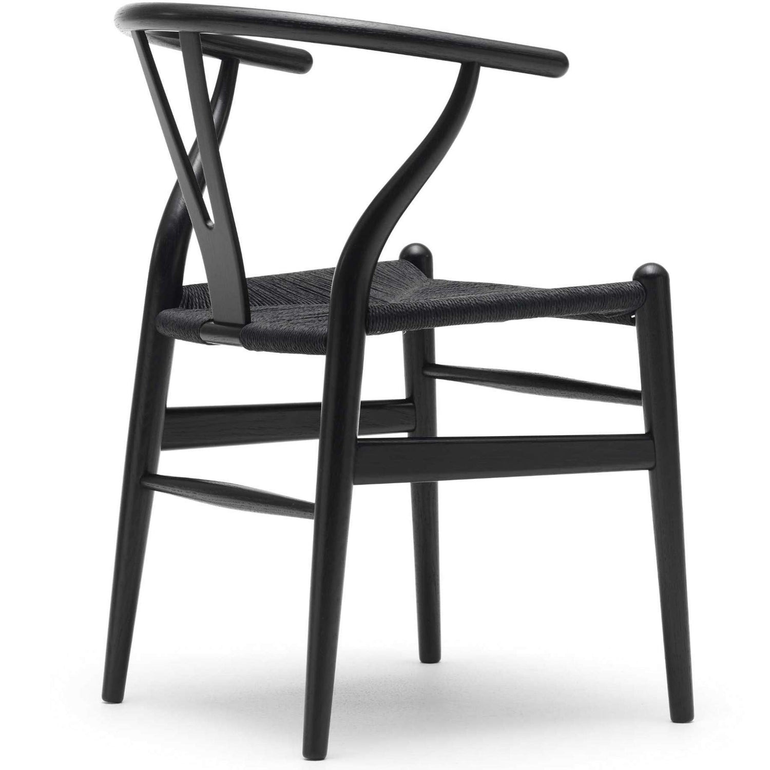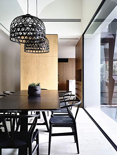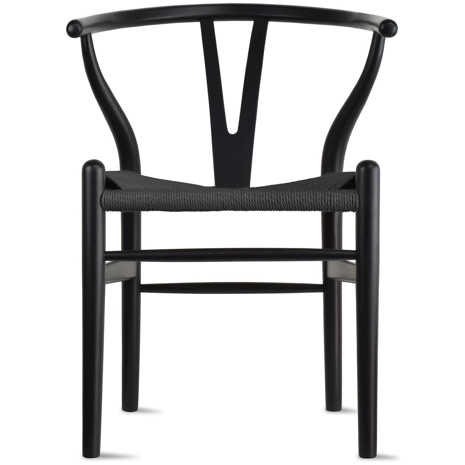 2xhome - Wishbone Solid Wood Armchair with Arms Open Y Back Farmhouse Dining Office Chair with Woven Black Seat (Black), Single, Set of 1