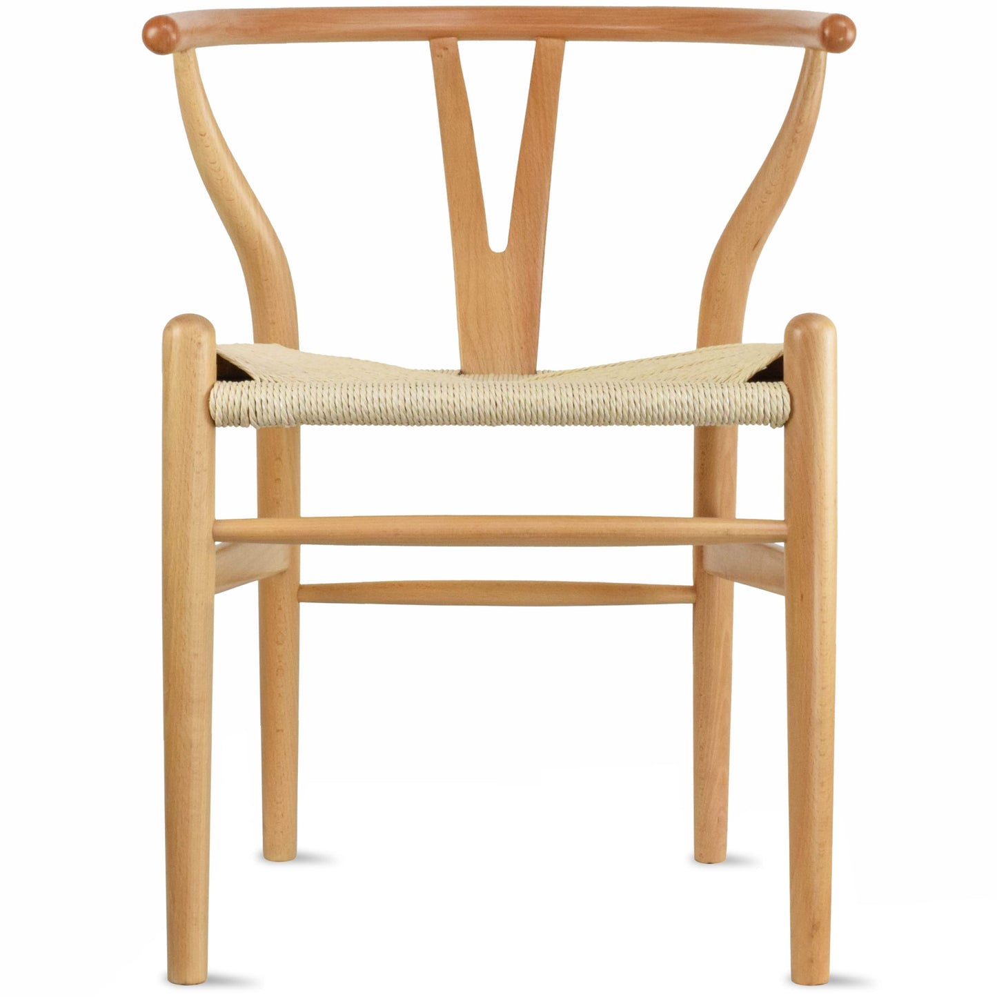 2xhome Wishbone Y Back Wooden Dining Chair with Woven Papercord Seat, Modern Farmhouse Elbow Side Chair, Natural, Single, Set of 1