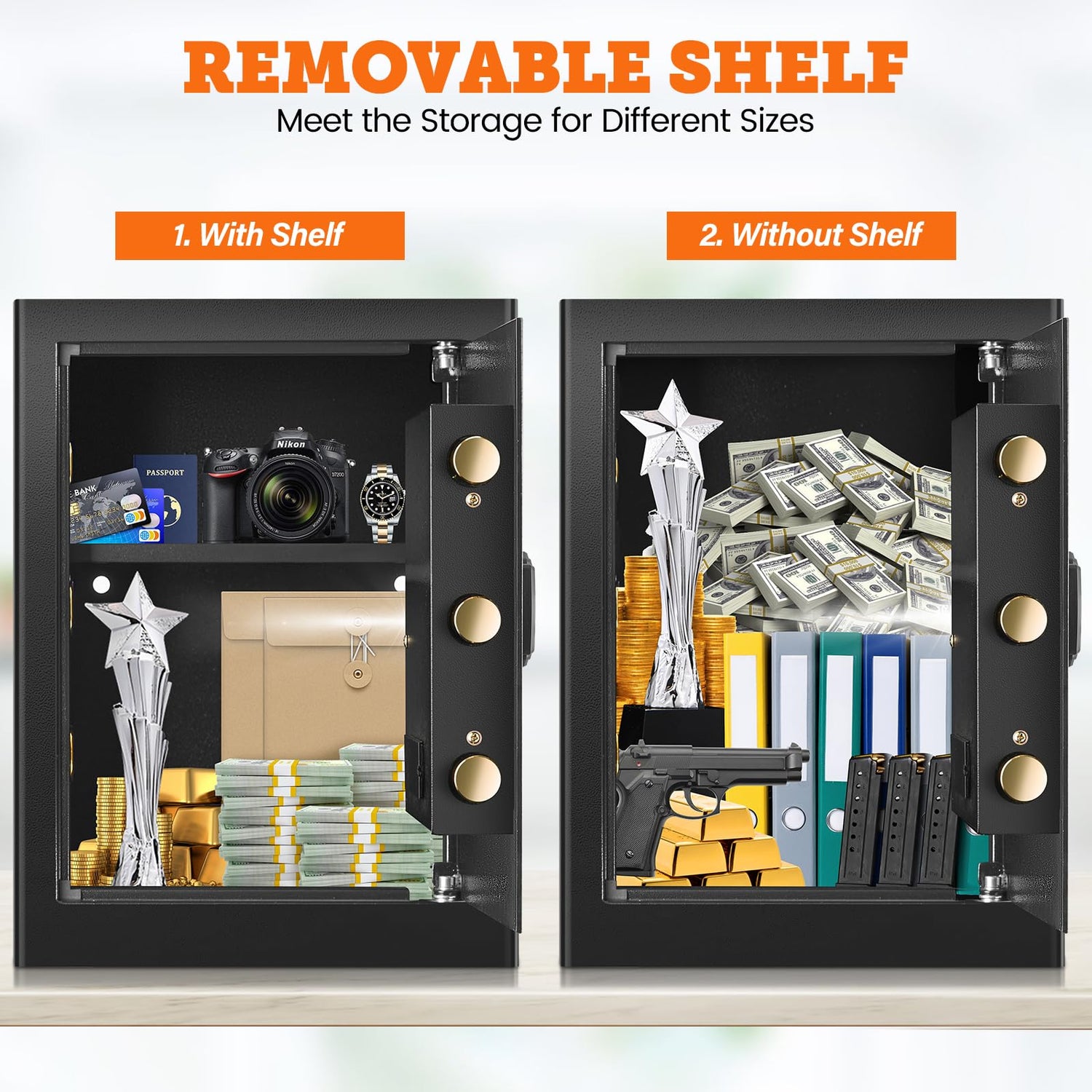 3.0 Cuft Large Fireproof Safe Box for HOME USE, Digital Home Security Safe with Programmable Keypad and Removable Shelf, Document Safe Fireproof Waterproof for Money Firearm Medicine Valuables