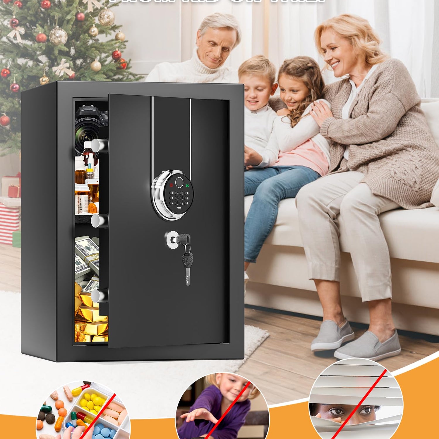 - 【MULTI-PURPOSE HOUSE SAFE】 Great for hiding weapons, cell phones, game station controllers from kids or hiding your most expensive liquor bottles from guests or hiding your most expensive spices, teas or chocolate from significant others or roommates (use fingerprint access for rapid midnight chocolate snacking when half asleep ;) or hiding stuff from snoopy friends and landlords in case of unauthorized entry