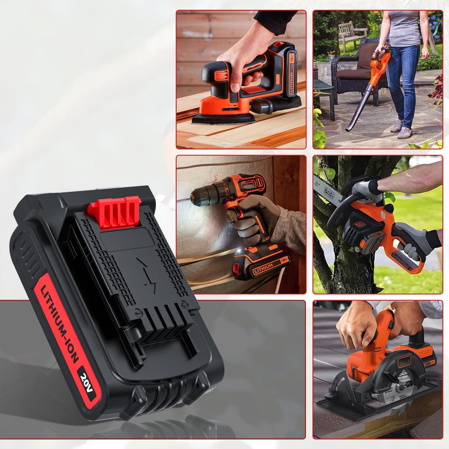 - ⚡【Perfect Compatibility】Replace for Black & Decker 20V lithium battery LB20, LBX20, LBXR20, LBXR2020, LB2X4020-OPE, LBXR20B-2; Totally work for Black Decker 20V battery cordless power tools.